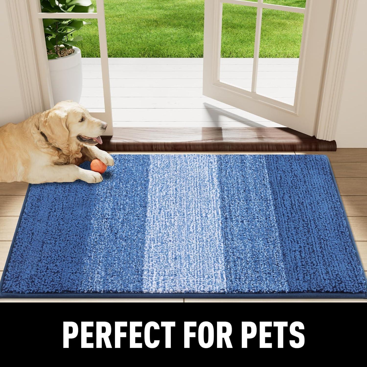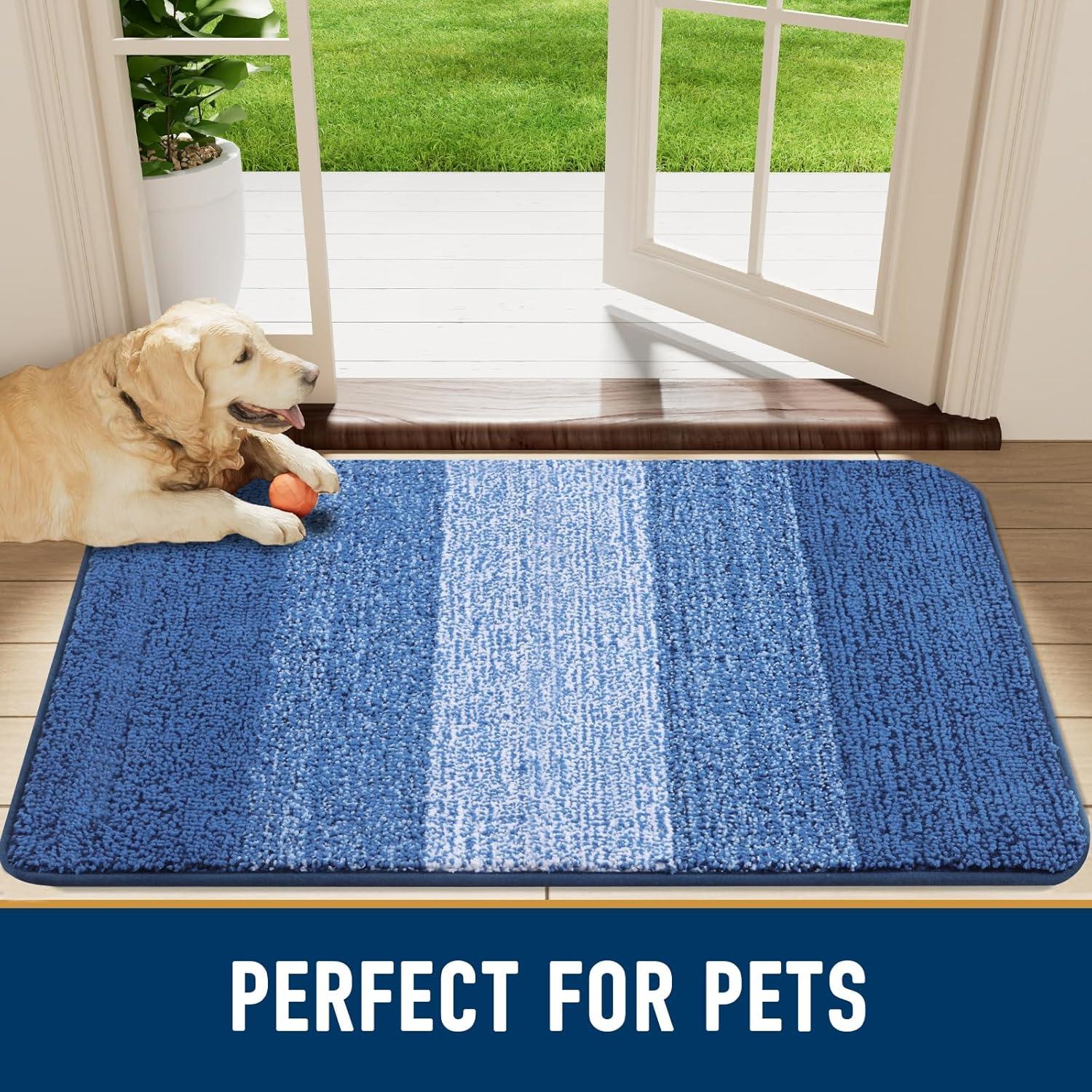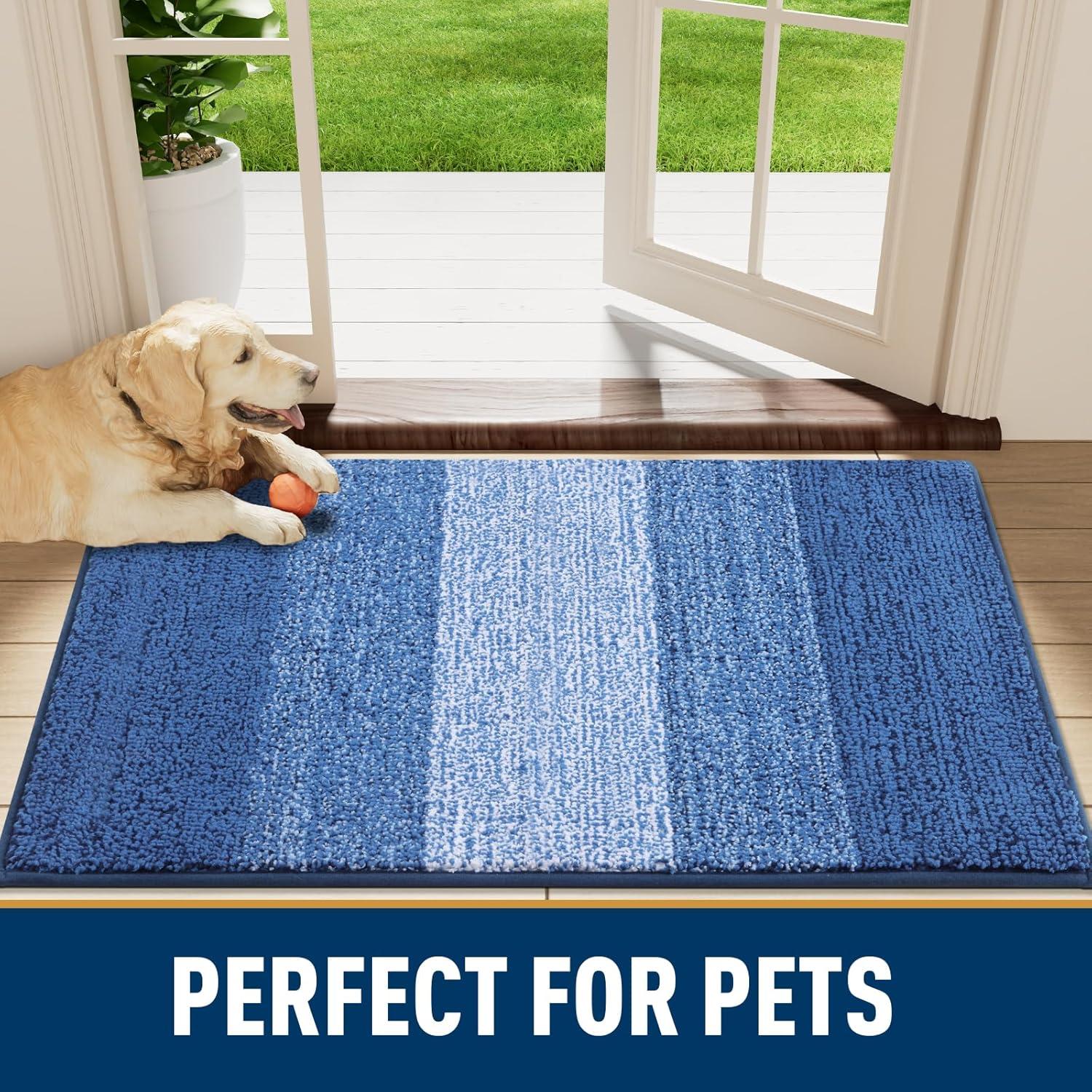Smiry Dog Door Mat for Muddy Paws, Absorbs Moisture and Dirt, Low-Profile Entryway Mat with Non-Slip Backing, Entry Indoor Outdoor Doormat for Inside Floor (30x20 Inches, Grey)(Navy Blue)