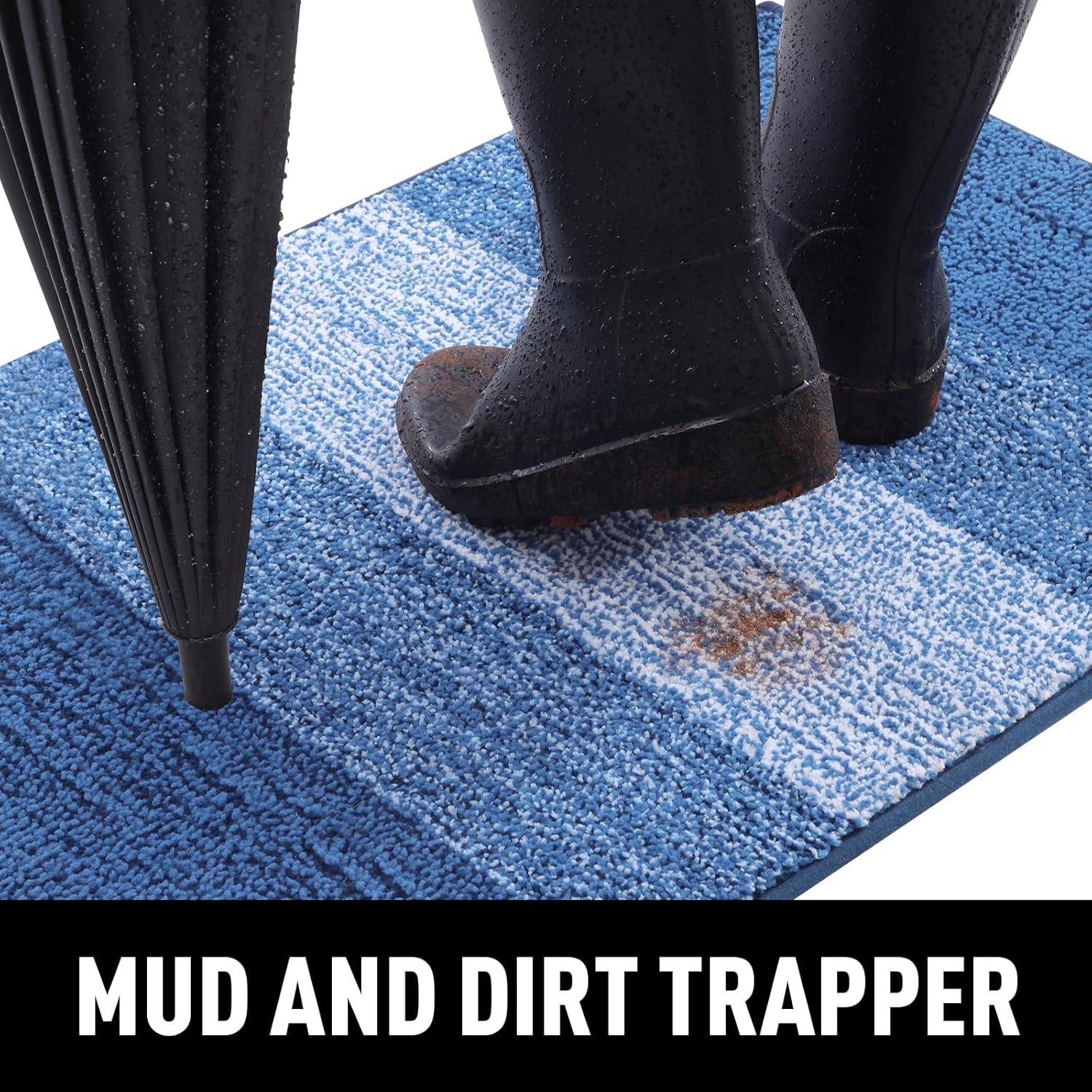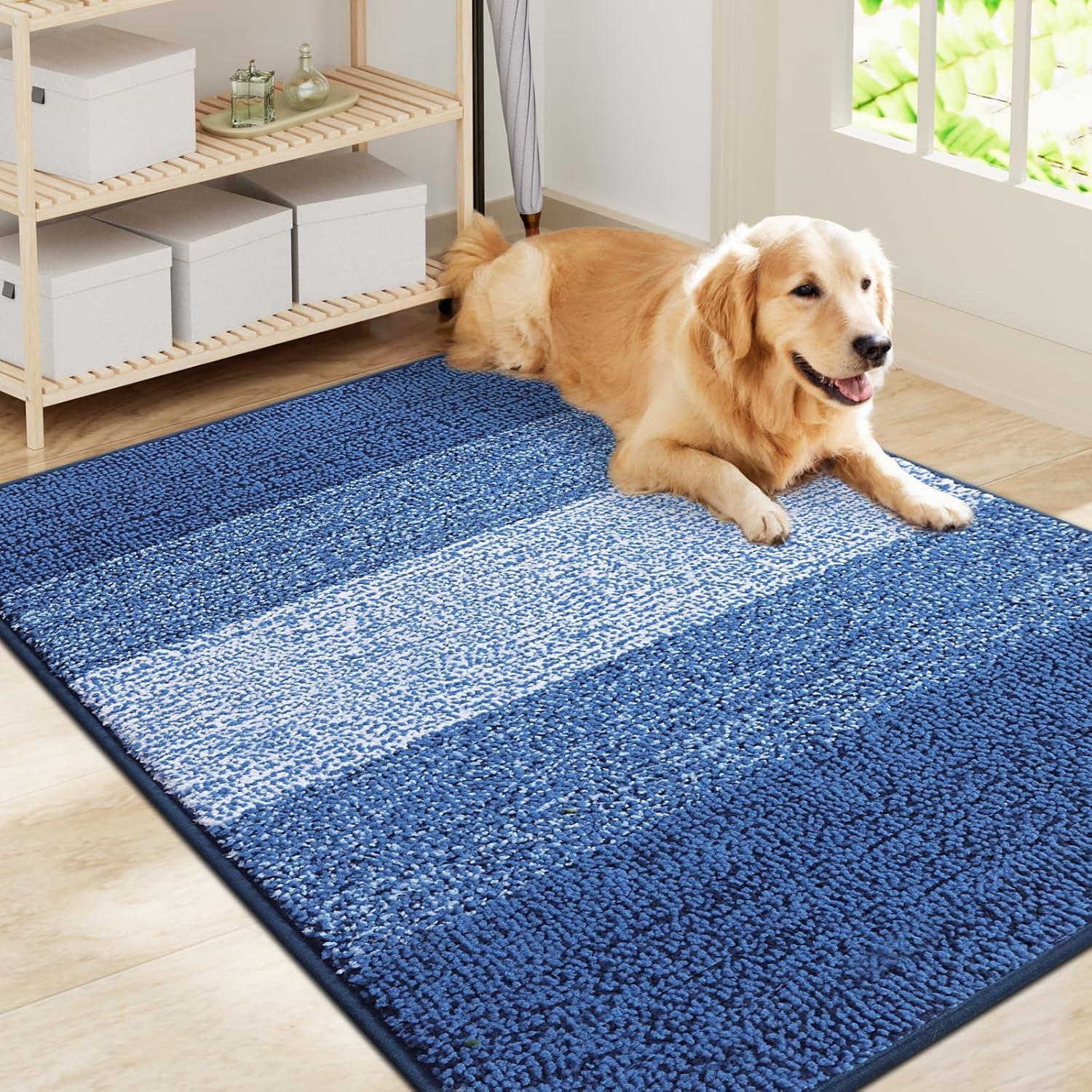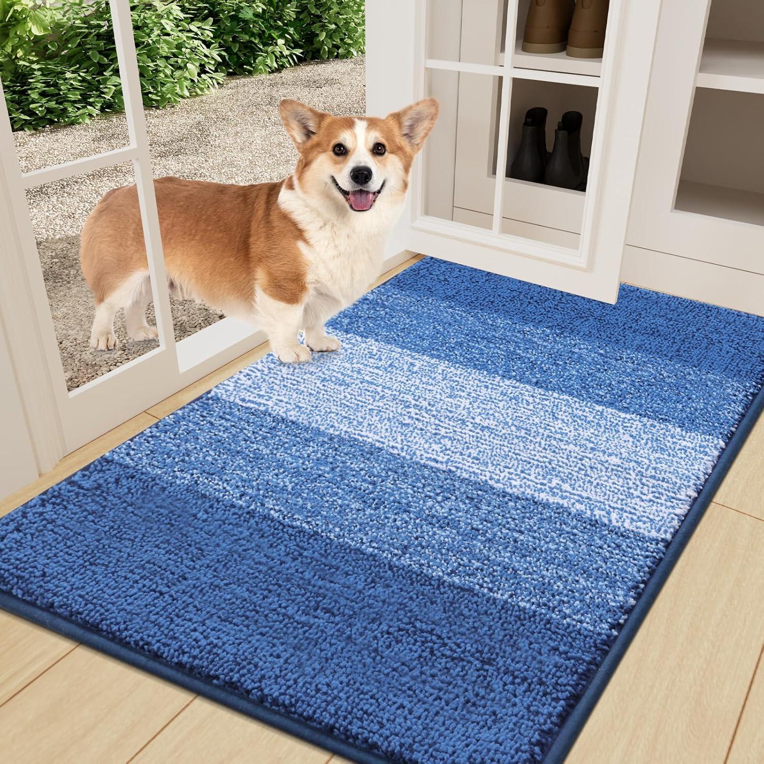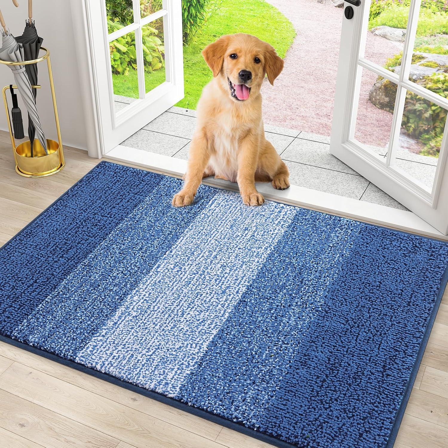 Smiry Dog Door Mat for Muddy Paws, Absorbs Moisture and Dirt, Low-Profile Entryway Mat with Non-Slip Backing, Entry Indoor Outdoor Doormat for Inside Floor (30x20 Inches, Grey)(Navy Blue)