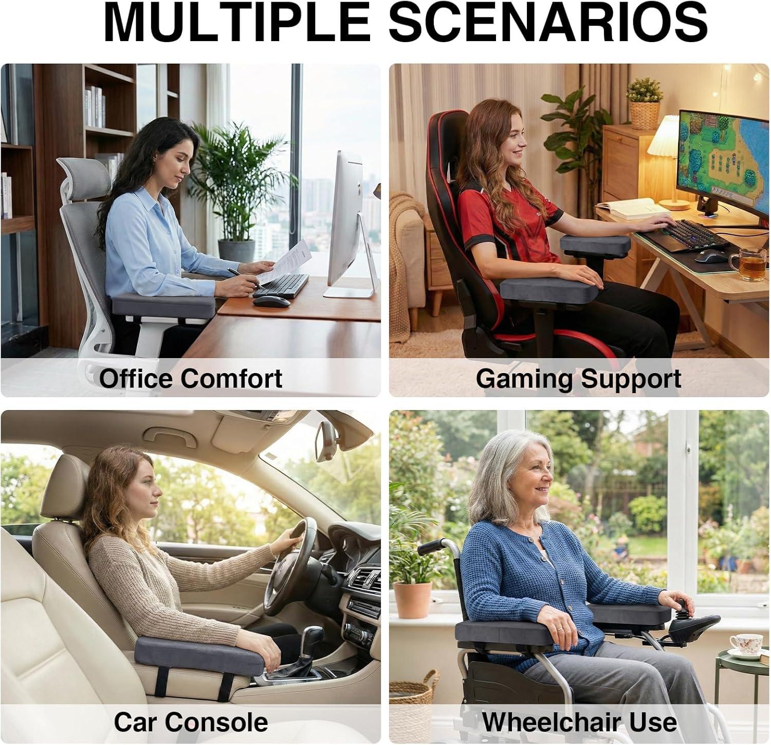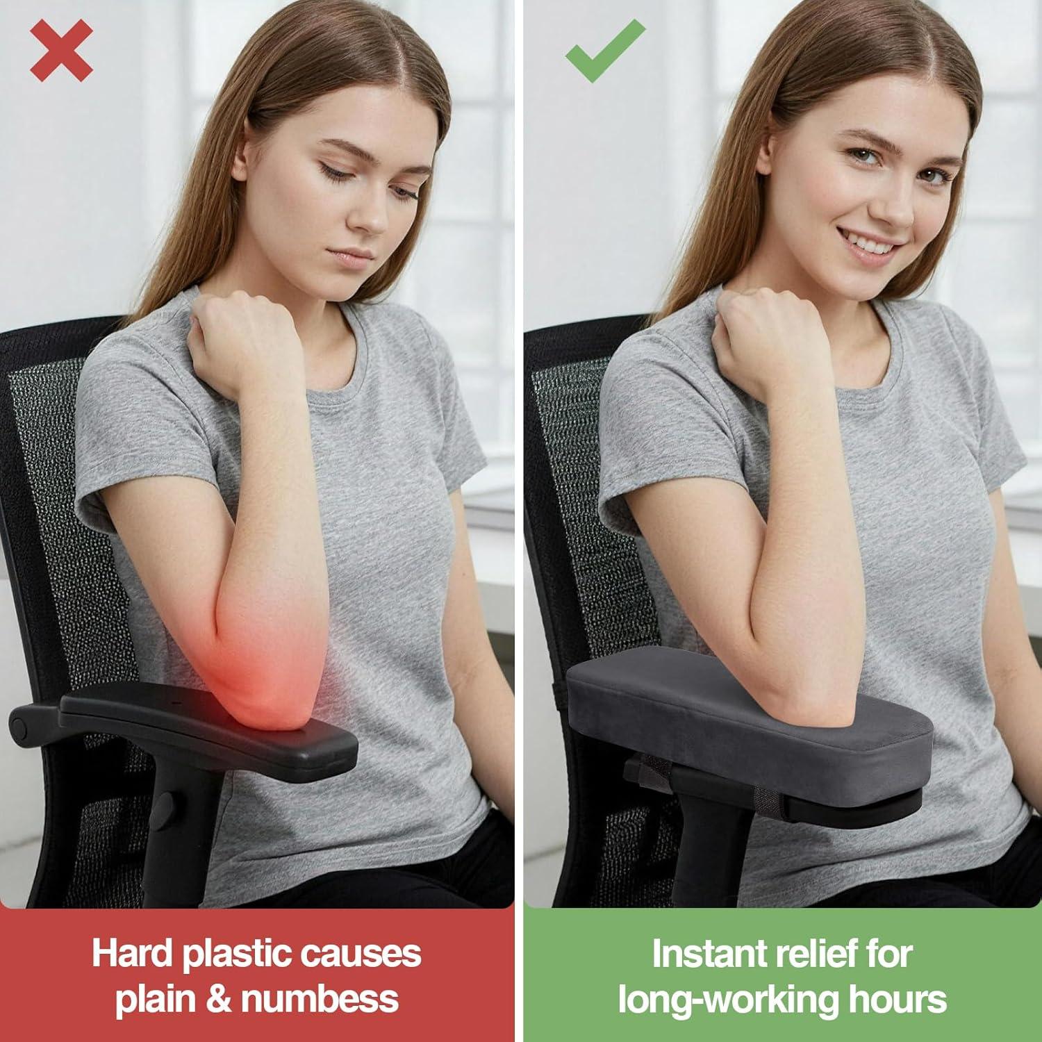 [THICK MEMORY FOAM] Instantly upgrade hard plastic armrests with our high-density rebound foam. These office chair arm covers contour perfectly to your elbows and forearms, providing cloud-like support that effectively relieves pressure and pain during long workdays