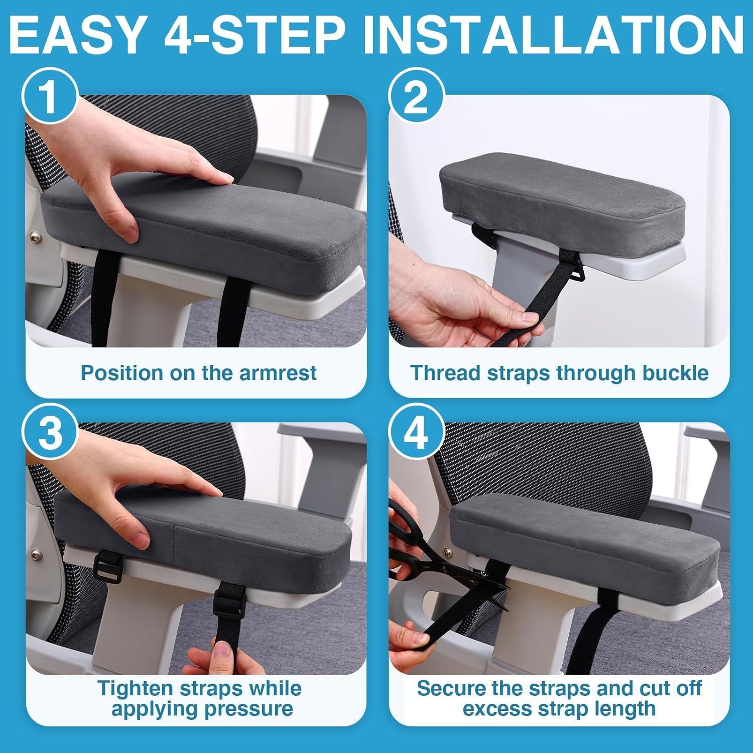 [SECURE NON-SLIP FIT] Enjoy uninterrupted comfort without constant adjustments. These office chair arm pads feature an upgraded double-fixation design with adjustable buckles, sturdy hook and loop tape, and a non-slip bottom to keep them firmly anchored in place