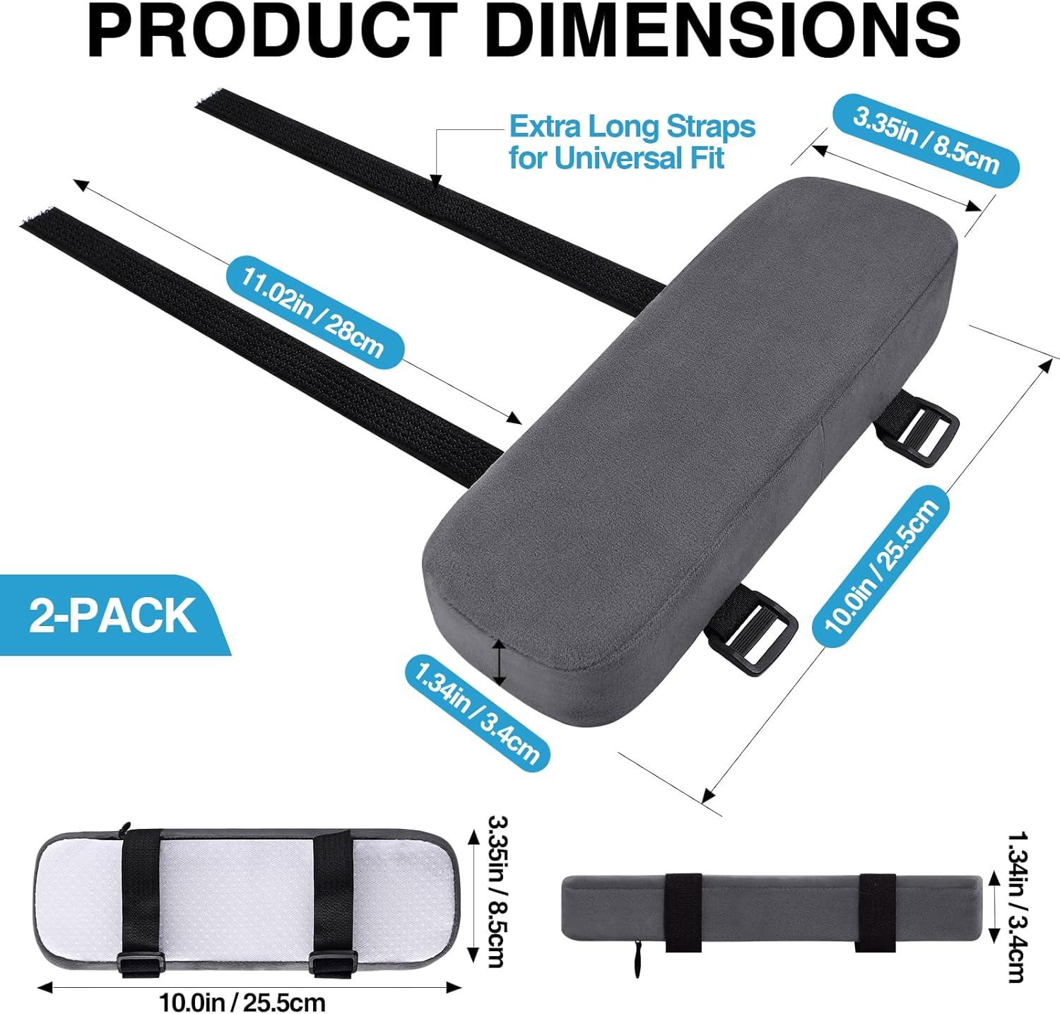 [UNIVERSAL FIT] Designed for versatility, the long adjustable straps ensure a snug fit. Measuring 10.04″ x 3.35″ x 1.34″, this 2 pack is perfect for armrests 3 to 4.5 inches wide. Whether you need chair arm rest pads for office task chairs, gaming chairs, or wheelchairs, they install in seconds without sagging or bunching up