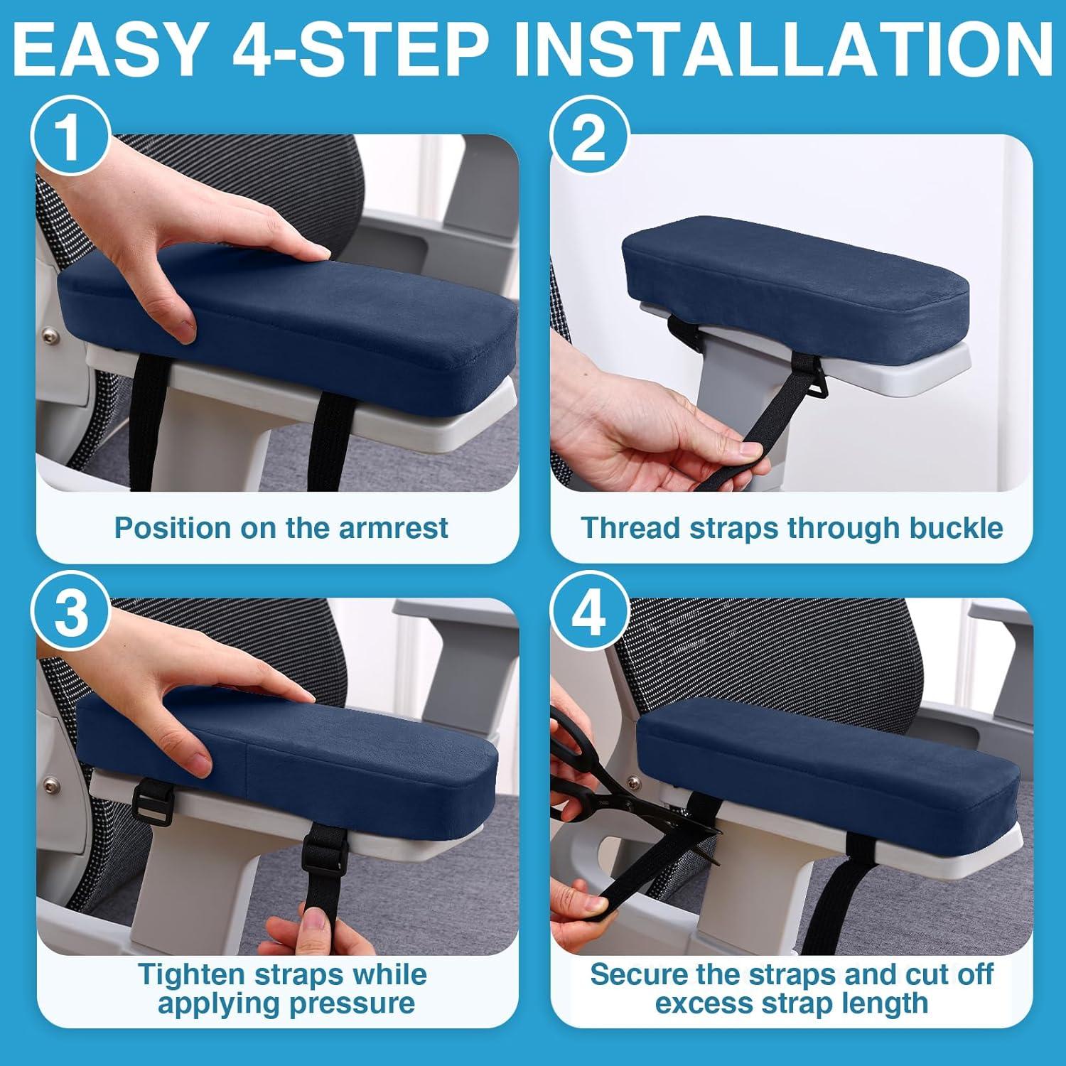 [SECURE NON-SLIP FIT] Enjoy uninterrupted comfort without constant adjustments. These office chair arm pads feature an upgraded double-fixation design with adjustable buckles, sturdy hook and loop tape, and a non-slip bottom to keep them firmly anchored in place