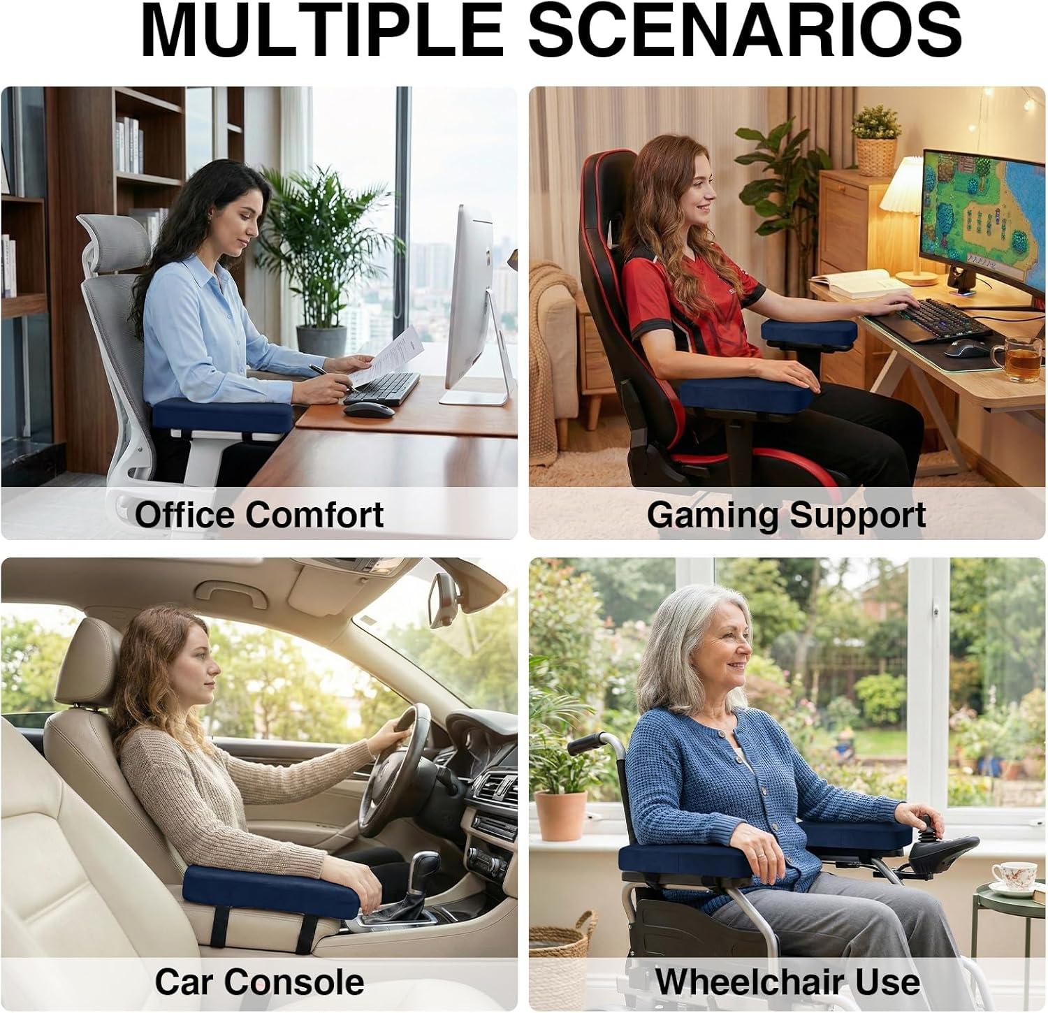 [THICK MEMORY FOAM] Instantly upgrade hard plastic armrests with our high-density rebound foam. These office chair arm covers contour perfectly to your elbows and forearms, providing cloud-like support that effectively relieves pressure and pain during long workdays