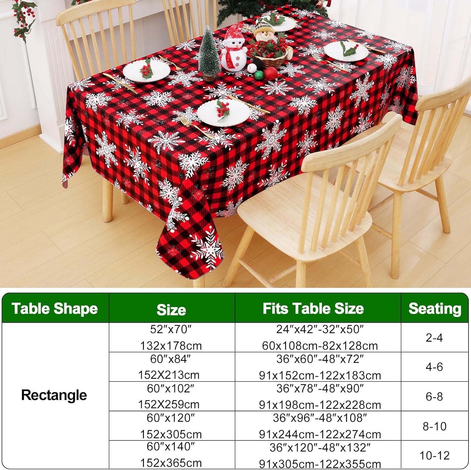 [Know Your Table Sizes] Smiry rectangle tablecloth measures 60 by 84 inches and fits rectangular tables measuring 36 x 60 inches to 48 x 72 inches, seating up to 6 to 8 adults. To purchase a more appropriate table cover, take a few seconds to measure your table before purchasing.