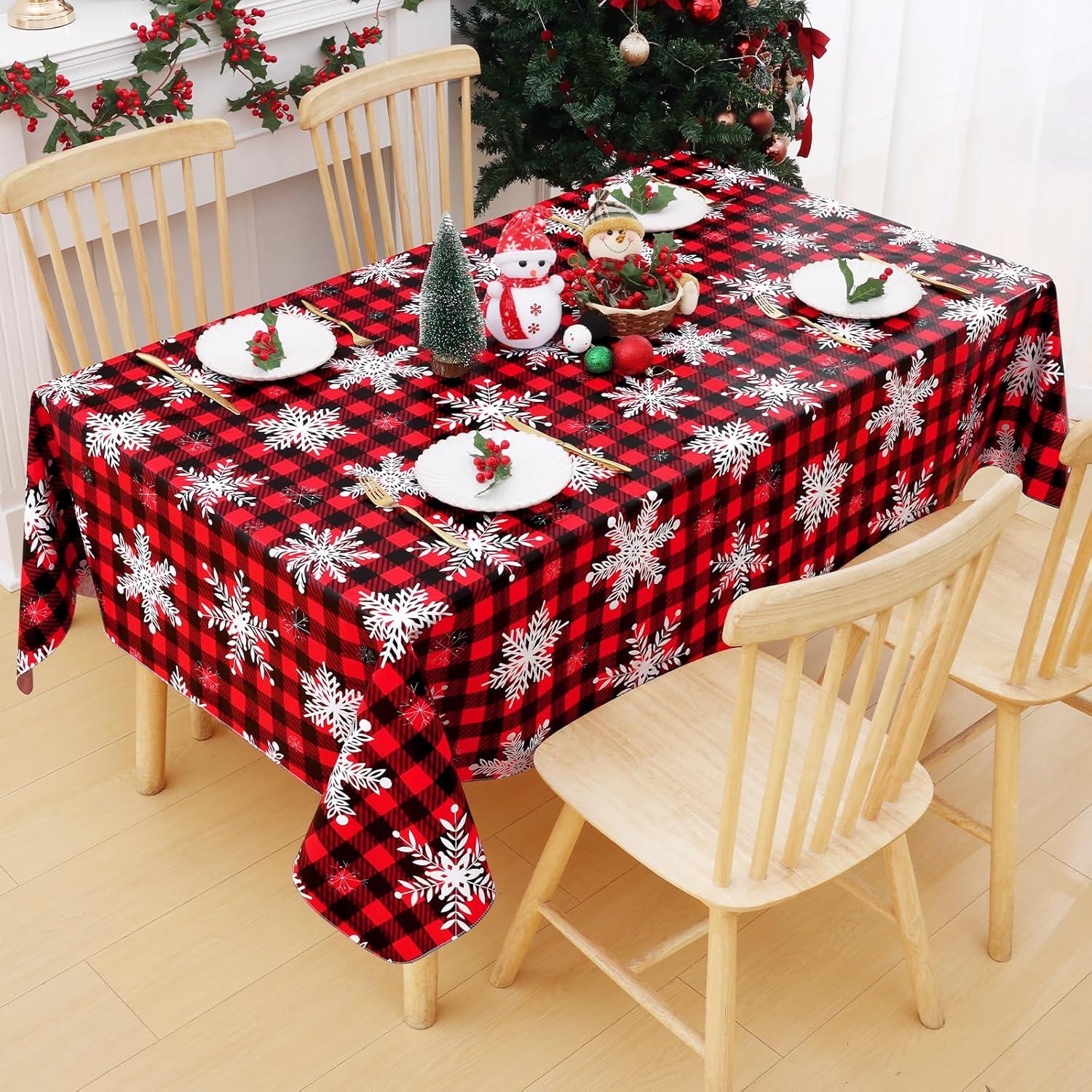 Smiry Fall Rectangle Table Cloth, Waterproof Vinyl Tablecloth with Flannel Backing, Wipeable Autumn Pumpkin Plastic Tablecloths for Harvest and Thanksgiving Parties (60″x84″, Black & Orange)(Christmas Red)