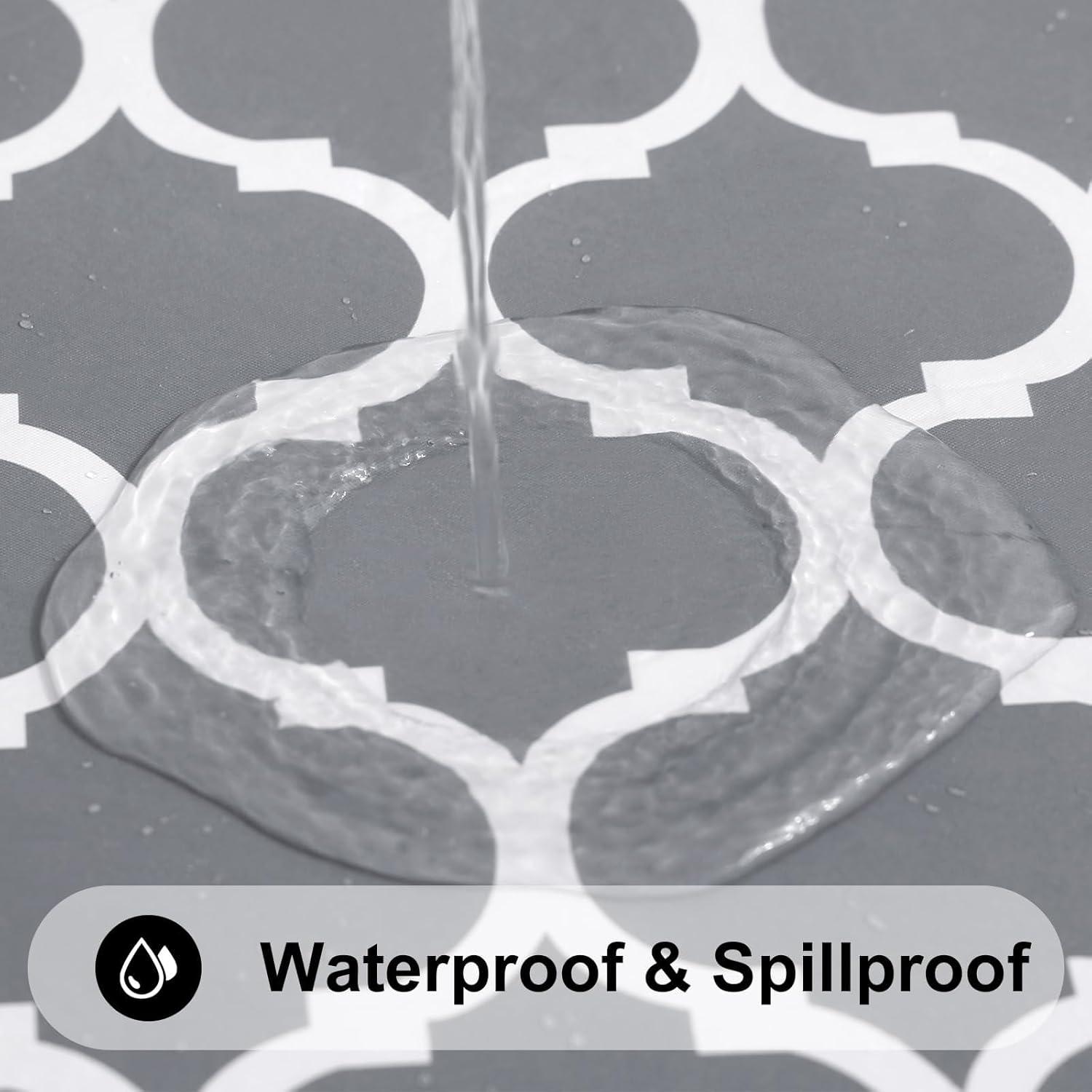 [Waterproof and Wipe Clean] The waterproof vinyl surfaces insulate our table cloths from water, milk, oil and other stains. Just rub with a damp cloth or sponge to remove the stain and look fresh.