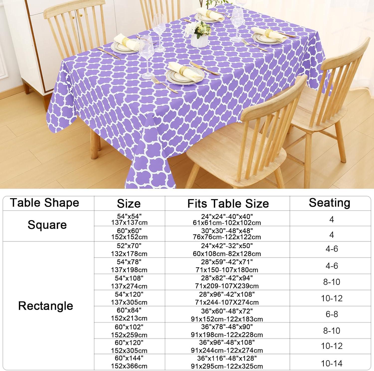 [Know Your Table Sizes] Smiry rectangle tablecloth measures 60 by 84 inches and fits rectangular tables measuring 36 x 60 inches to 48 x 72 inches, seating up to 6 to 8 adults. To purchase a more appropriate table cover, take a few seconds to measure your table before purchasing.