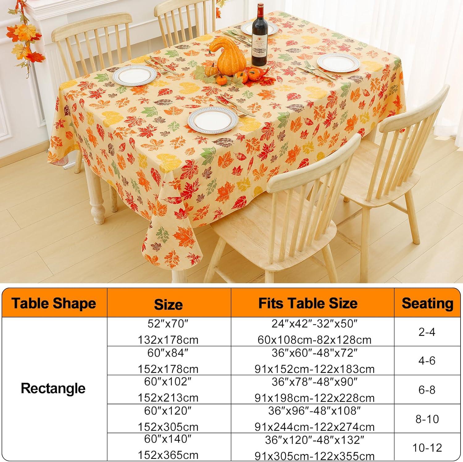 [Know Your Table Sizes] Smiry rectangle tablecloth measures 60 by 84 inches and fits rectangular tables measuring 36 x 60 inches to 48 x 72 inches, seating up to 6 to 8 adults. To purchase a more appropriate table cover, take a few seconds to measure your table before purchasing.