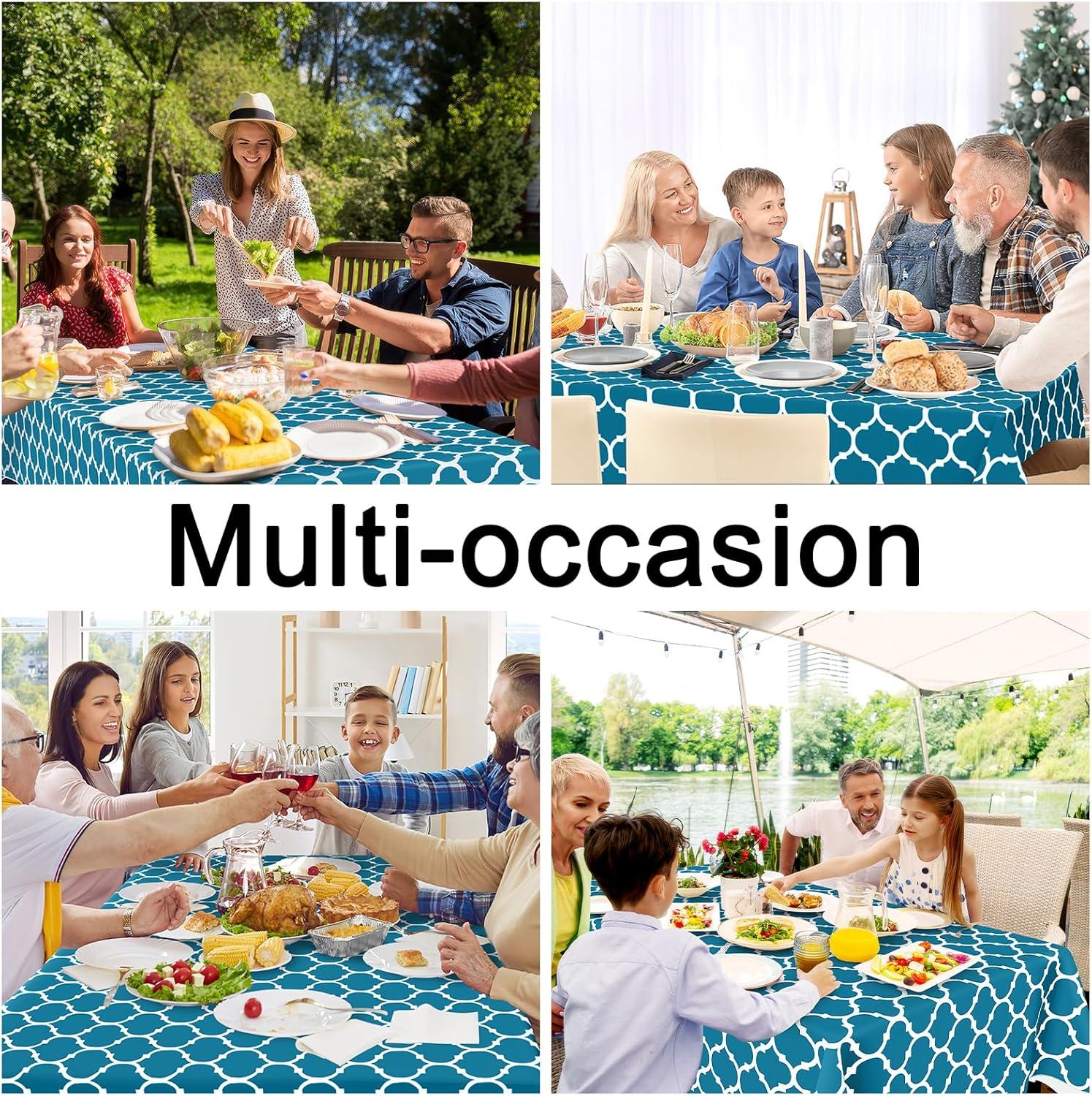 [Know Your Table Sizes] Smiry rectangle tablecloth measures 60 by 84 inches and fits rectangular tables measuring 36 x 60 inches to 48 x 72 inches, seating up to 6 to 8 adults. To purchase a more appropriate table cover, take a few seconds to measure your table before purchasing.