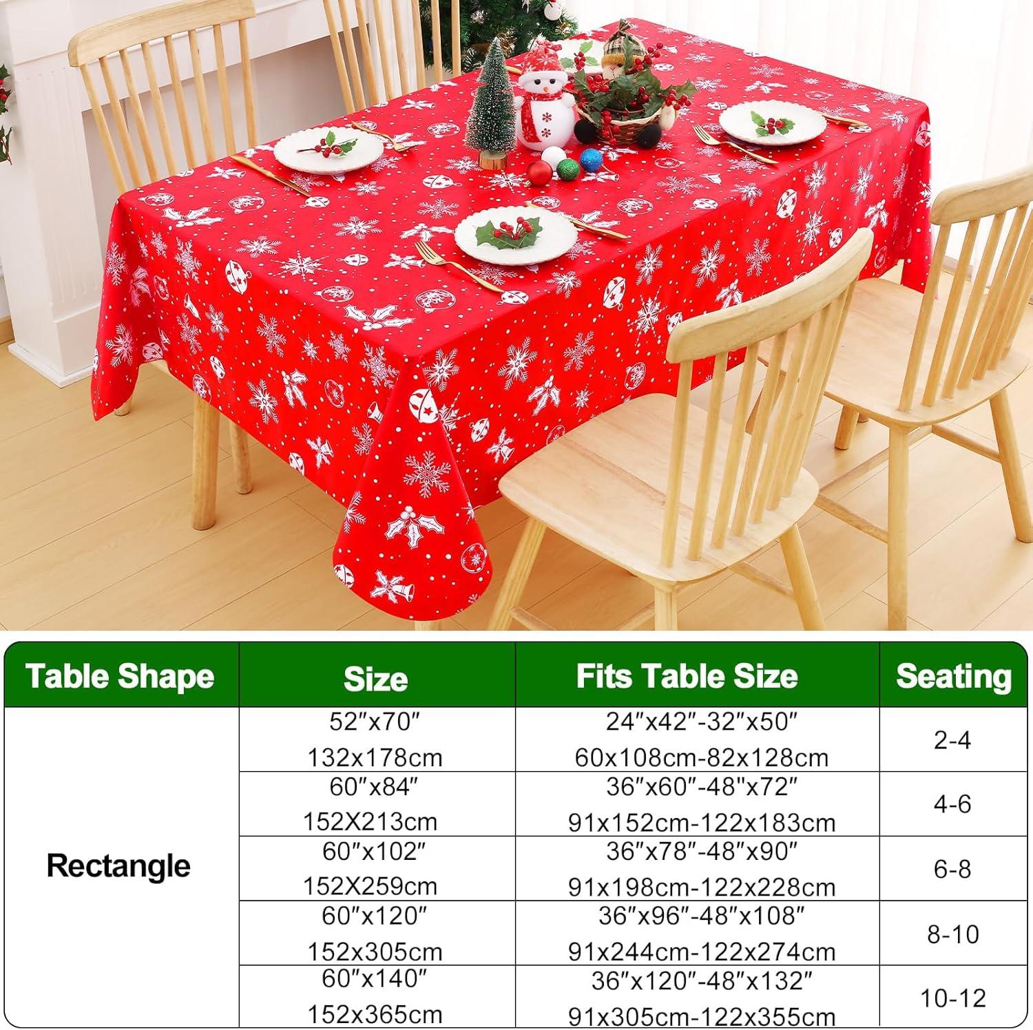 [Know Your Table Sizes] Smiry rectangle tablecloth measures 60 by 84 inches and fits rectangular tables measuring 36 x 60 inches to 48 x 72 inches, seating up to 6 to 8 adults. To purchase a more appropriate table cover, take a few seconds to measure your table before purchasing.