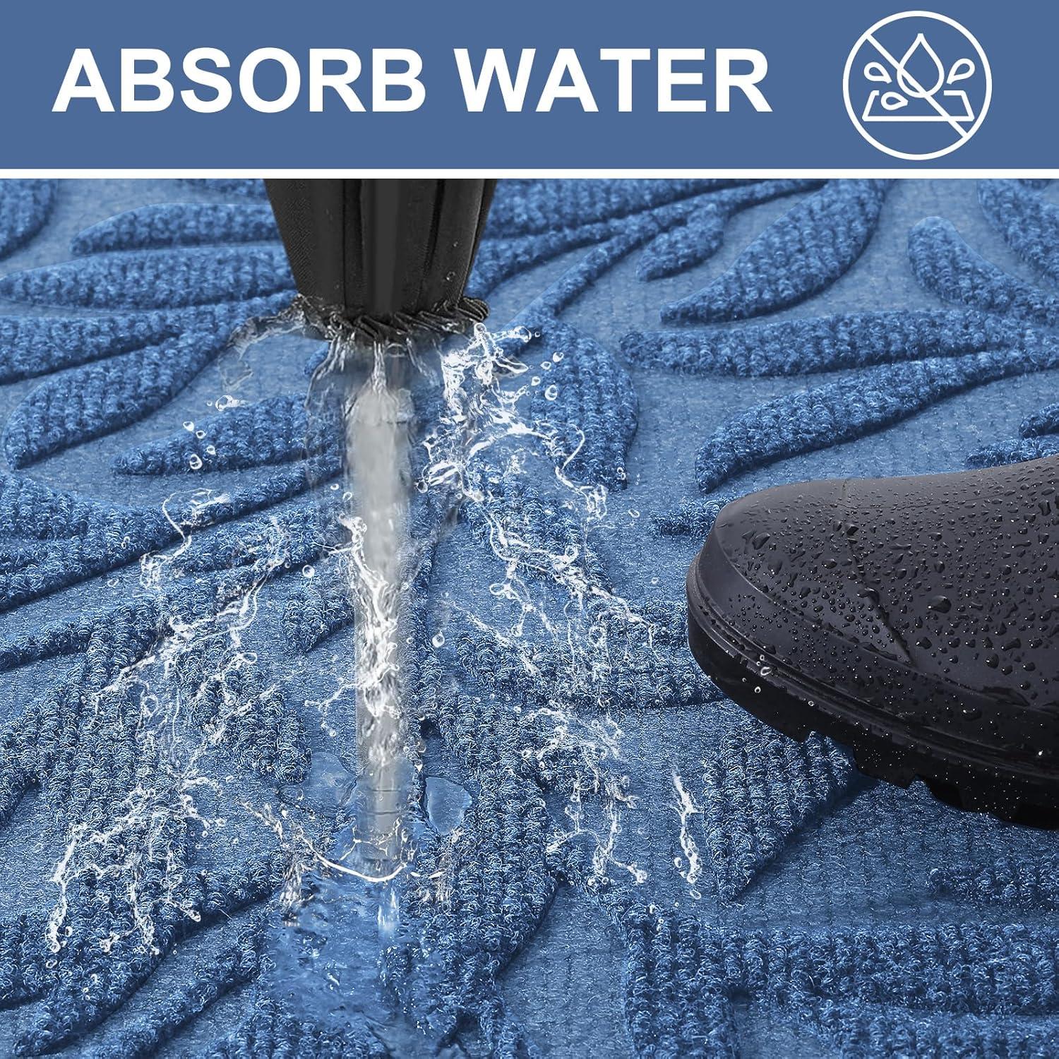 【Capture Dirt and Moisture】Smiry front door mat features foliage deep groove design that effectively traps dirt, dust, gravel, mud, sand, grass, and other messy debris. Its surface is crafted from beautifully woven polyester fabric that absorbs moisture, while the sturdy oblique rubber edge stops water accumulation during rainy or snowy conditions, ensuring your home remains dry and clean