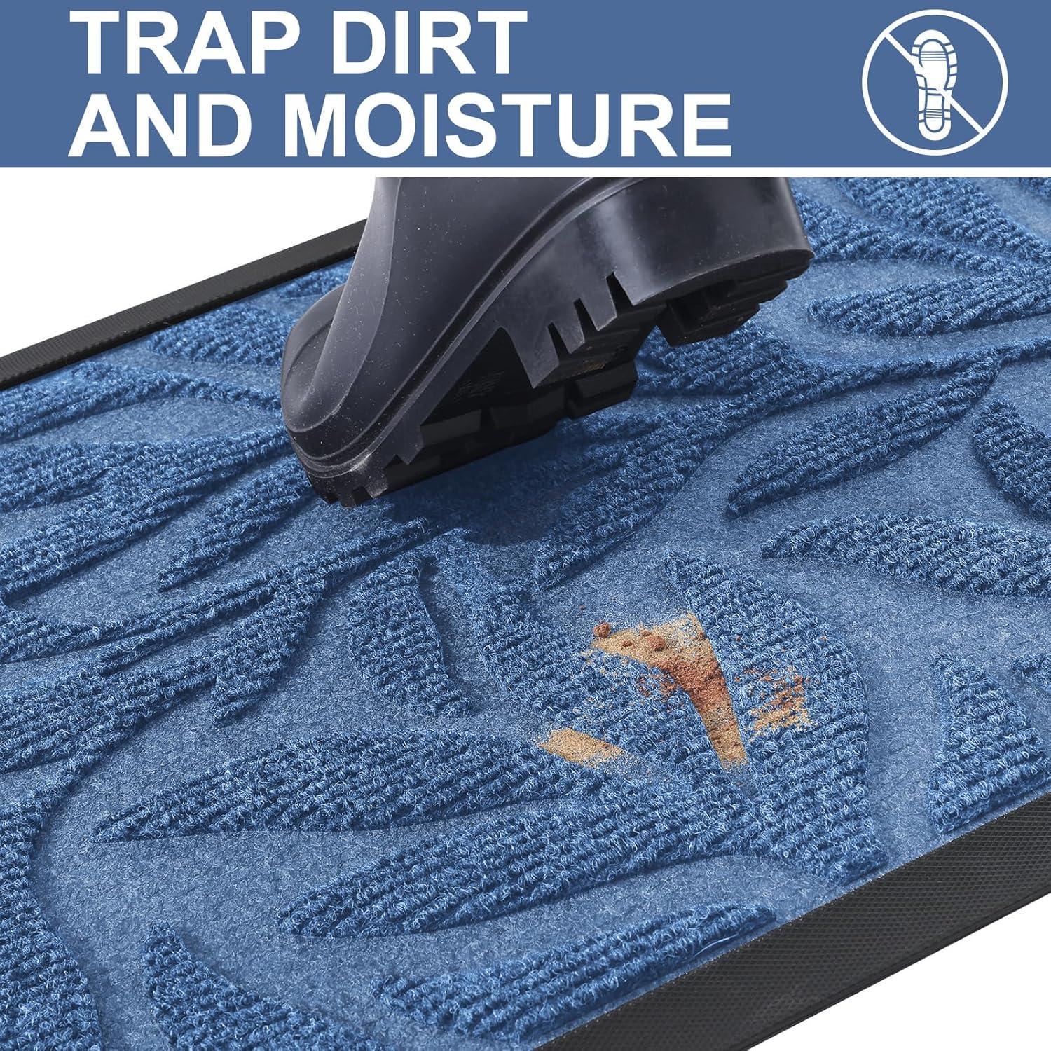 Smiry Front Door Mat Indoor Outdoor Entrance, Heavy Duty Natural Rubber, Trap Dirt and Moisture, Non-Slip Doormats, Low Profile, Easy Clean Patio Porch Entryway Mat, 29.5x17, Navy(Blue)