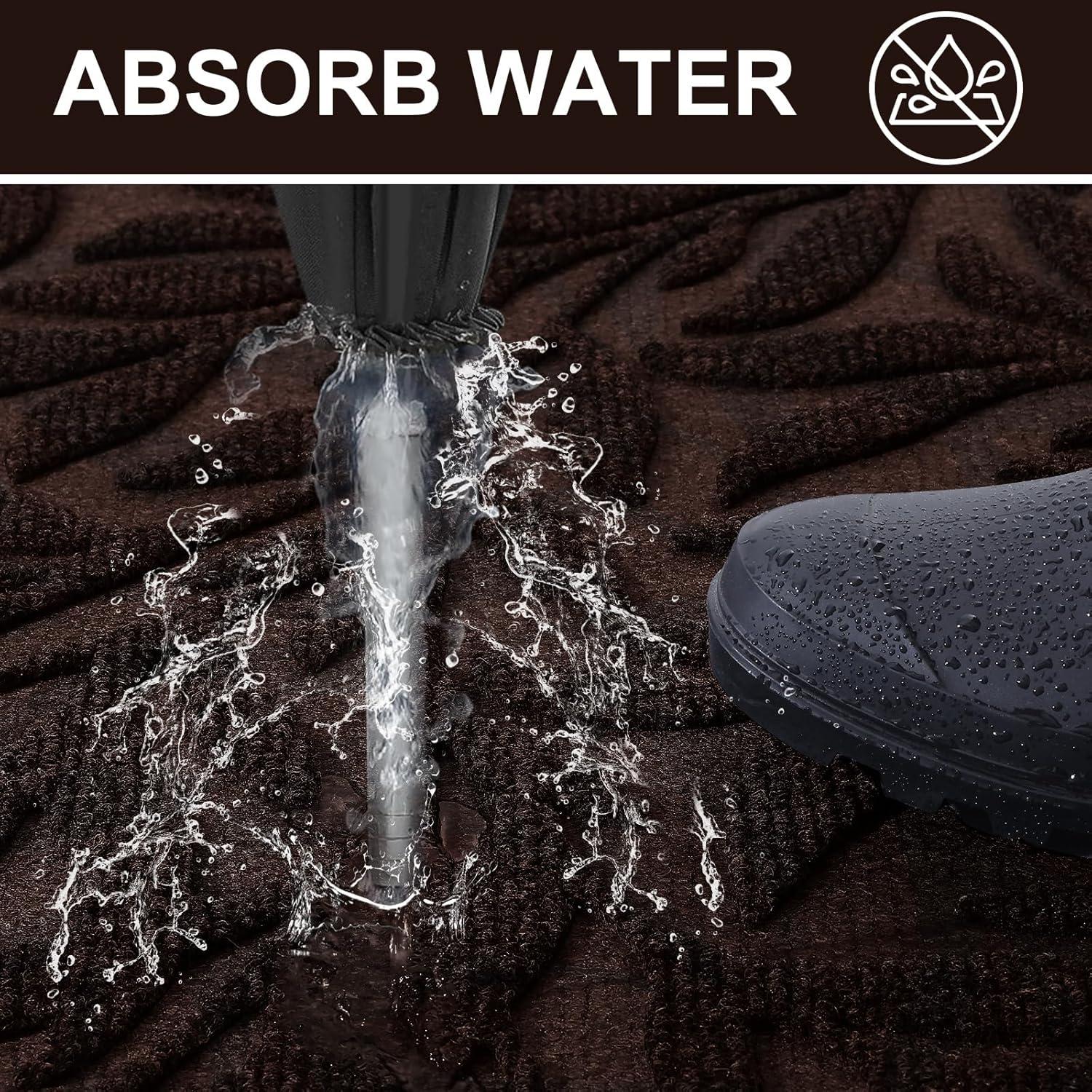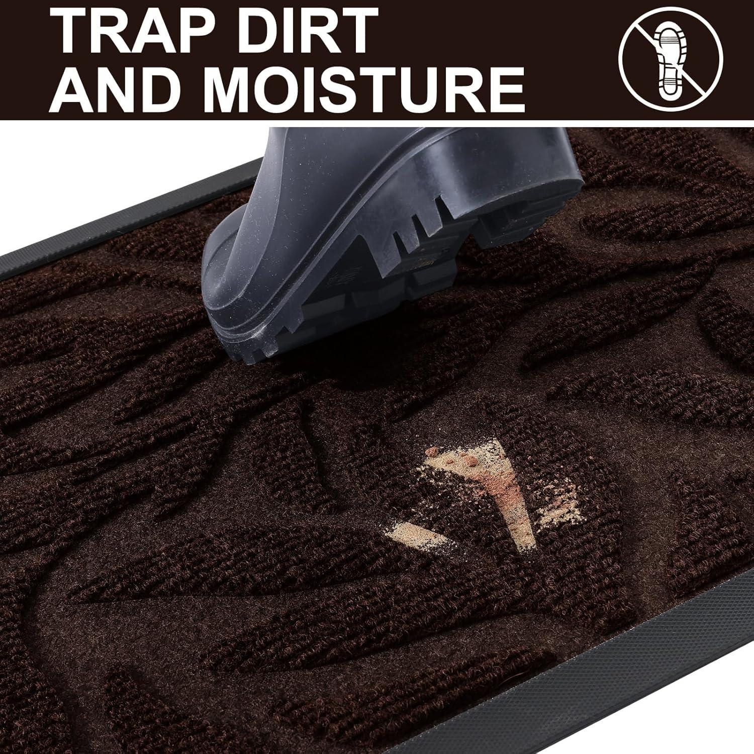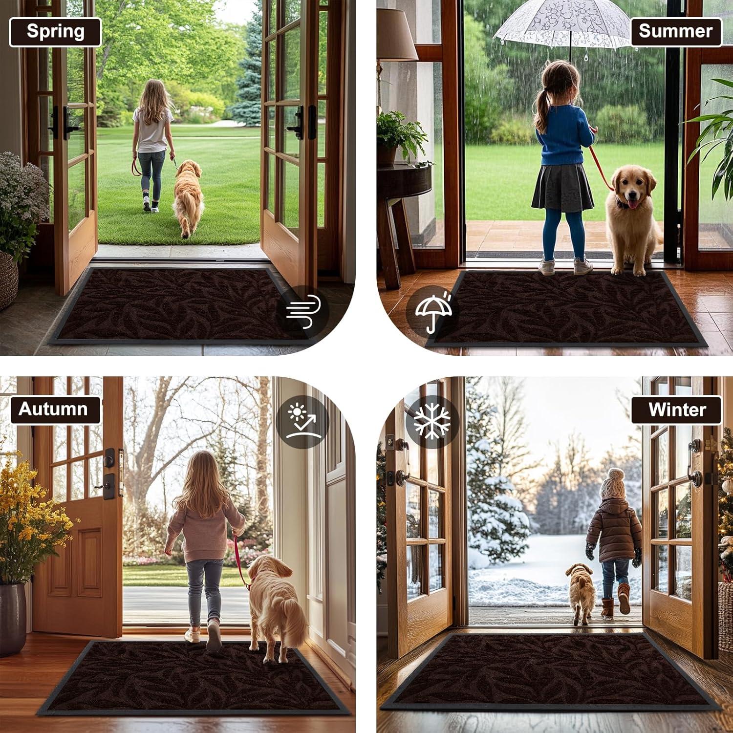 【Capture Dirt and Moisture】Smiry front door mat features foliage deep groove design that effectively traps dirt, dust, gravel, mud, sand, grass, and other messy debris. Its surface is crafted from beautifully woven polyester fabric that absorbs moisture, while the sturdy oblique rubber edge stops water accumulation during rainy or snowy conditions, ensuring your home remains dry and clean