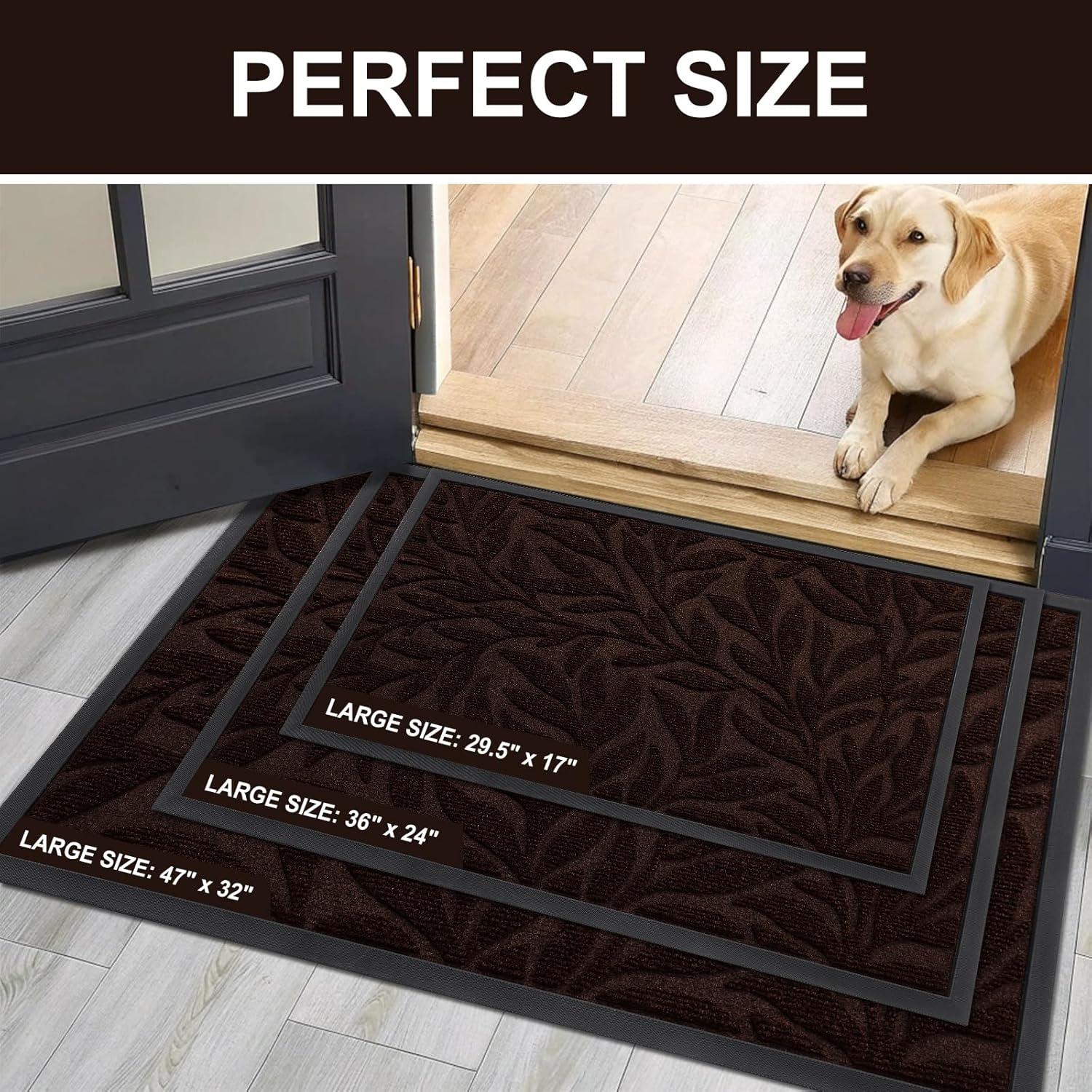 Smiry Front Door Mat Indoor Outdoor Entrance, Heavy Duty Natural Rubber, Trap Dirt and Moisture, Non-Slip Doormats, Low Profile, Easy Clean Patio Porch Entryway Mat, 29.5×17, Navy(Coffee)