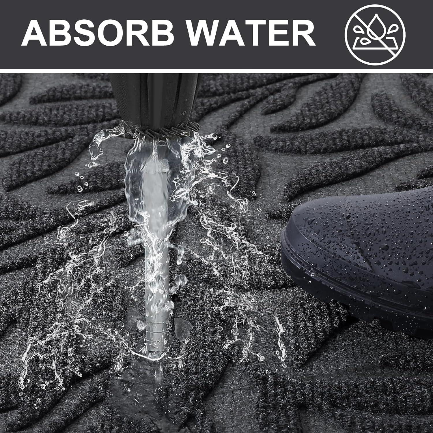 【Capture Dirt and Moisture】Smiry front door mat features foliage deep groove design that effectively traps dirt, dust, gravel, mud, sand, grass, and other messy debris. Its surface is crafted from beautifully woven polyester fabric that absorbs moisture, while the sturdy oblique rubber edge stops water accumulation during rainy or snowy conditions, ensuring your home remains dry and clean