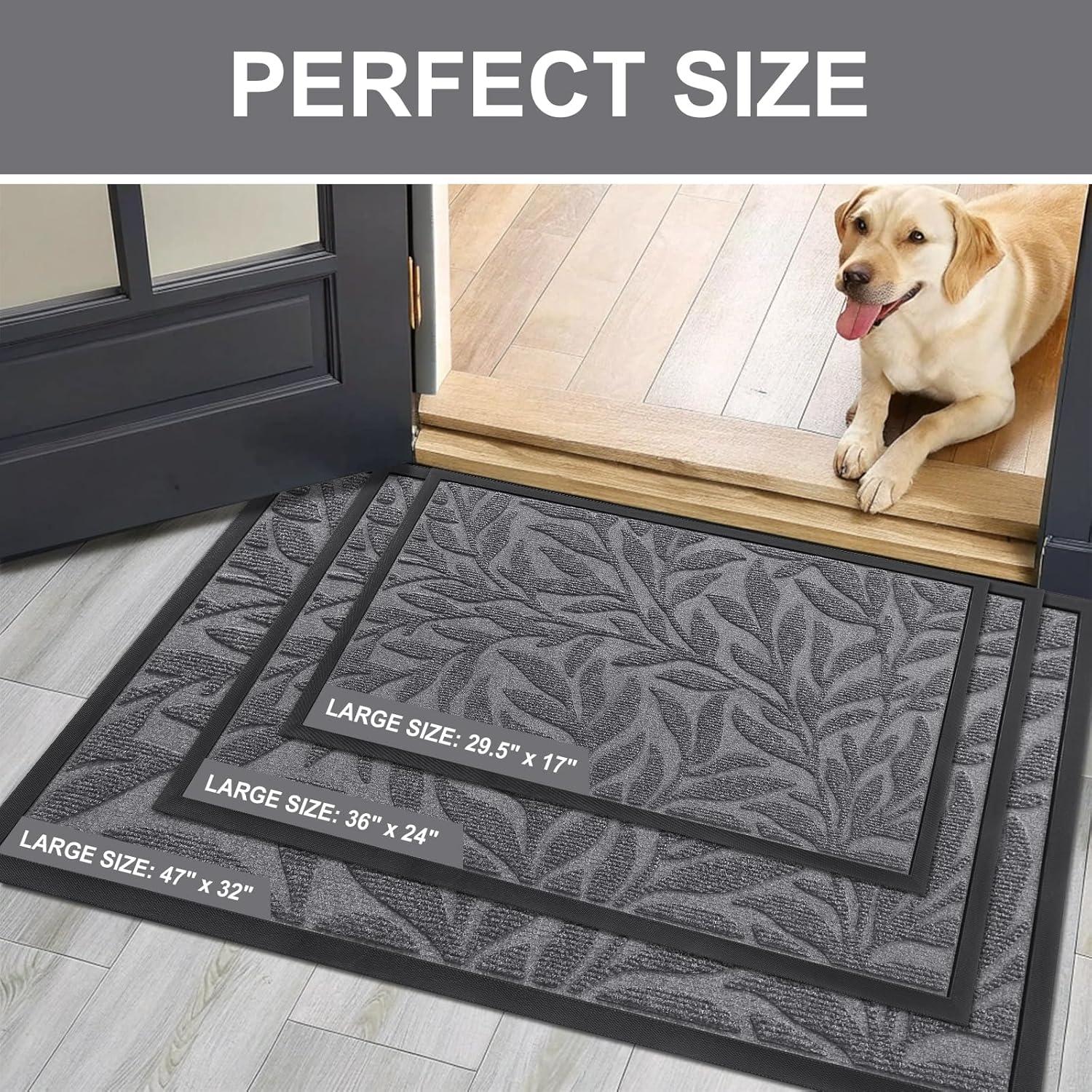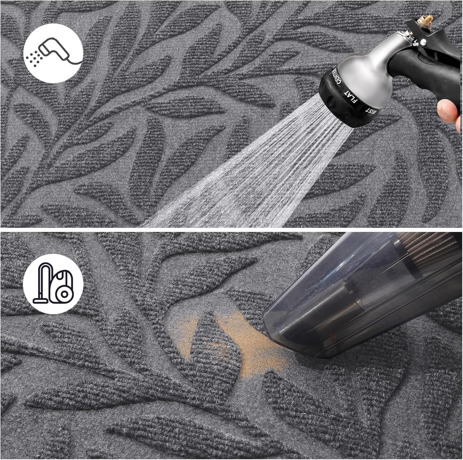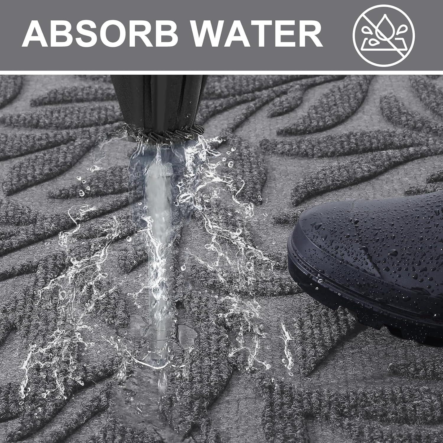 【Capture Dirt and Moisture】Smiry front door mat features foliage deep groove design that effectively traps dirt, dust, gravel, mud, sand, grass, and other messy debris. Its surface is crafted from beautifully woven polyester fabric that absorbs moisture, while the sturdy oblique rubber edge stops water accumulation during rainy or snowy conditions, ensuring your home remains dry and clean