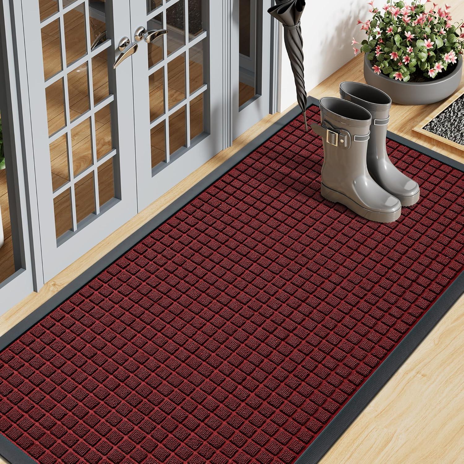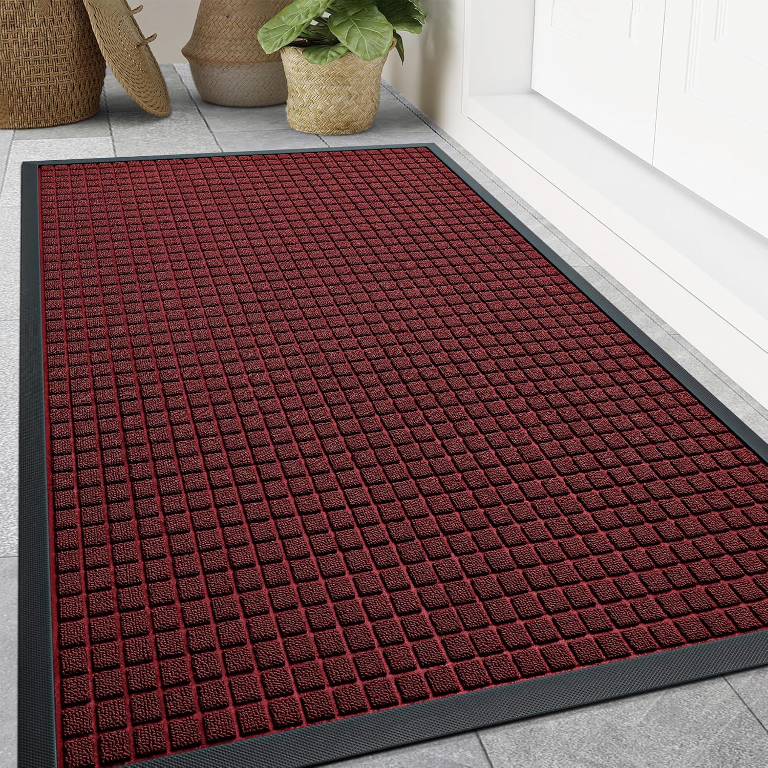 Smiry Front Door Mat Outside Entrance, Heavy Duty Natural Rubber Doormat, Non Slip, Trap Dirt and Moisture, Easy Clean, Low Profile Welcome Floor Mats for Indoor Outdoor Entry, 29.5x17 Inch, Black(Red)