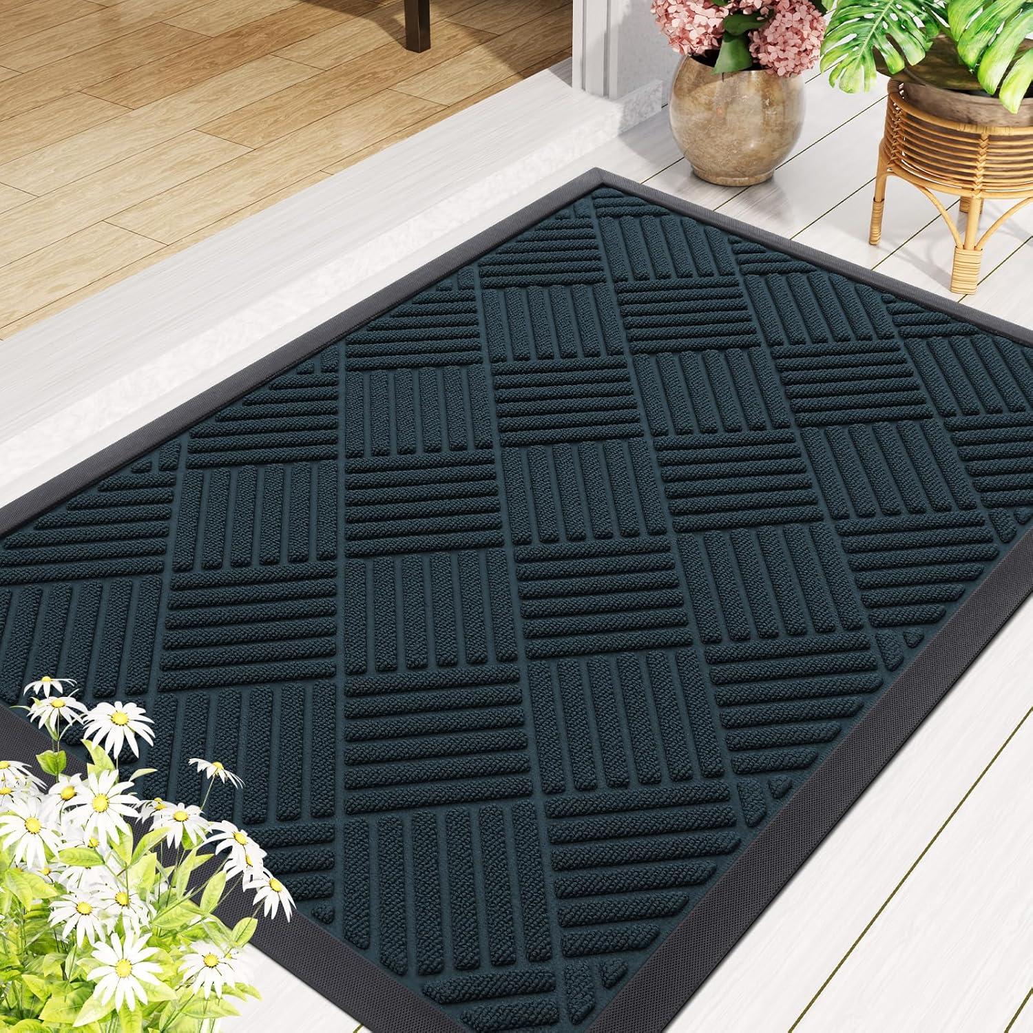 Smiry Front Door Mat Outside Entrance, Heavy Duty Outdoor Indoor Natural Rubber Doormat, Non Slip, Trap Dirt and Moisture, Easy Clean, Low Profile Patio Porch Entryway Mat, 29.5x17, Grey(Lake Blue)