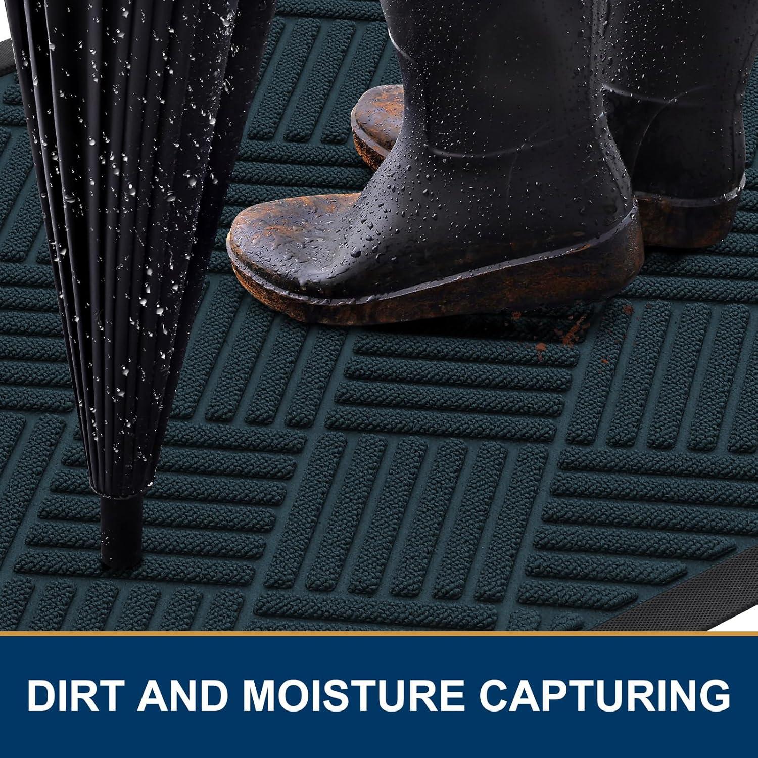 Capture Dirt and Moisture: The surface of the Smiry door mat is crafted from woven polyester fabric. The deep grooves can effectively trap the dust, gravel, mud, sand and other clutter. The sturdy beveled rubber edge will not accumulate water. Even rainy, snowy or muddy weather will keep your home dry and clean