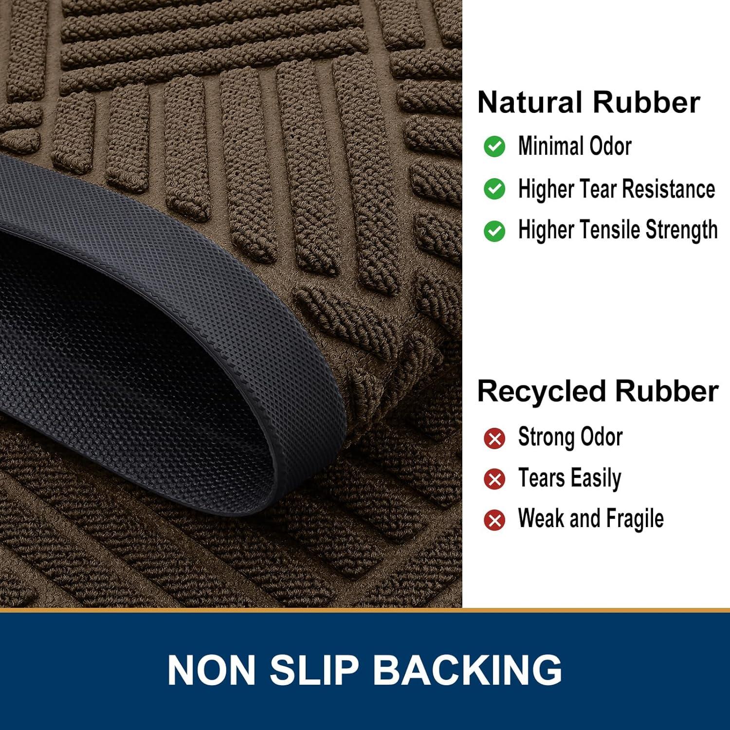 Sturdy & Non-Faded: Good quality natural rubber makes the door mat long-lasting. Excellent tensile strength and not easy to tear withstand all weather and seasonal changes. Odorless and fastness to fading makes the process of reuse more pleasant