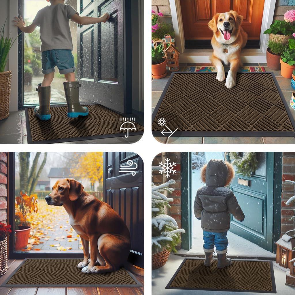 imageSmiry Front Door Mat Outside Entrance Heavy Duty Outdoor Indoor Natural Rubber Doormat Non Slip Trap Dirt and Moisture Easy Clean Low Profile Patio Porch Entryway Mat 295x17 GreyMix Brown
