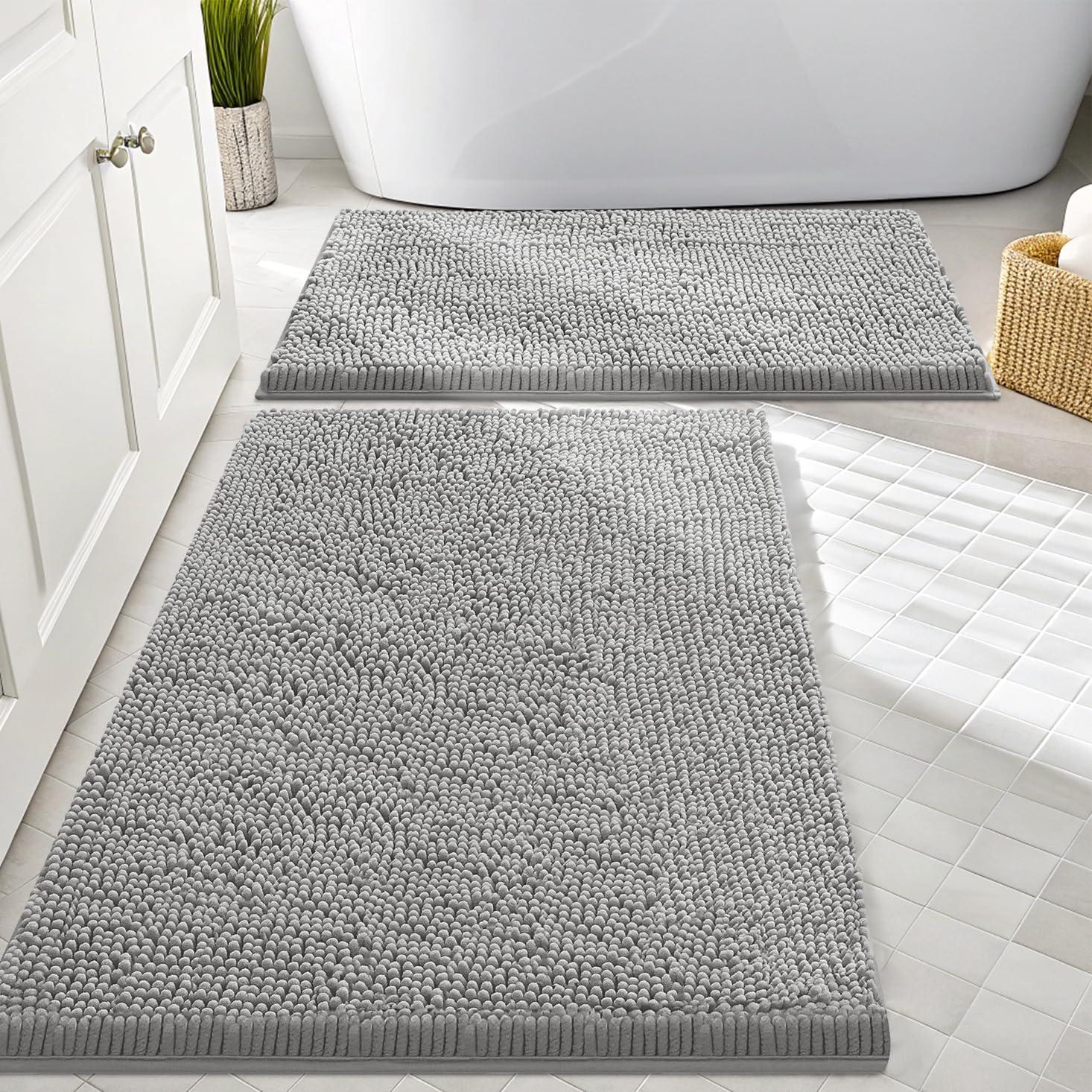 Smiry Chenille Bathroom Rugs 30×20+24×16, Extra Soft and Absorbent Shaggy Bath Mat, Machine Washable, Non-Slip Plush Carpet, Grey