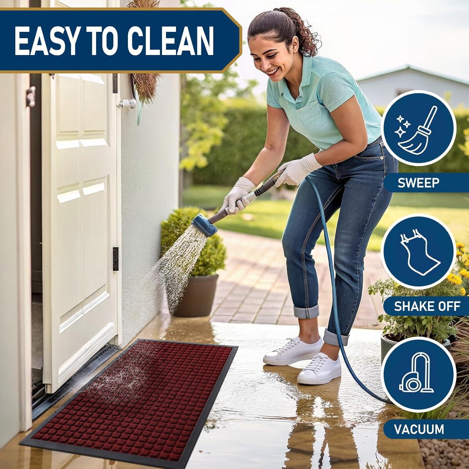 EASY TO CLEAN : Smiry front door mat is easy to maintain—simply sweep, shake, or vacuum for routine cleaning. For a deeper cleaning, use a washing machine or hose to rinse, then hang it in a ventilated place to air-dry or tumble-dry. Do not use bleach or fabric softeners