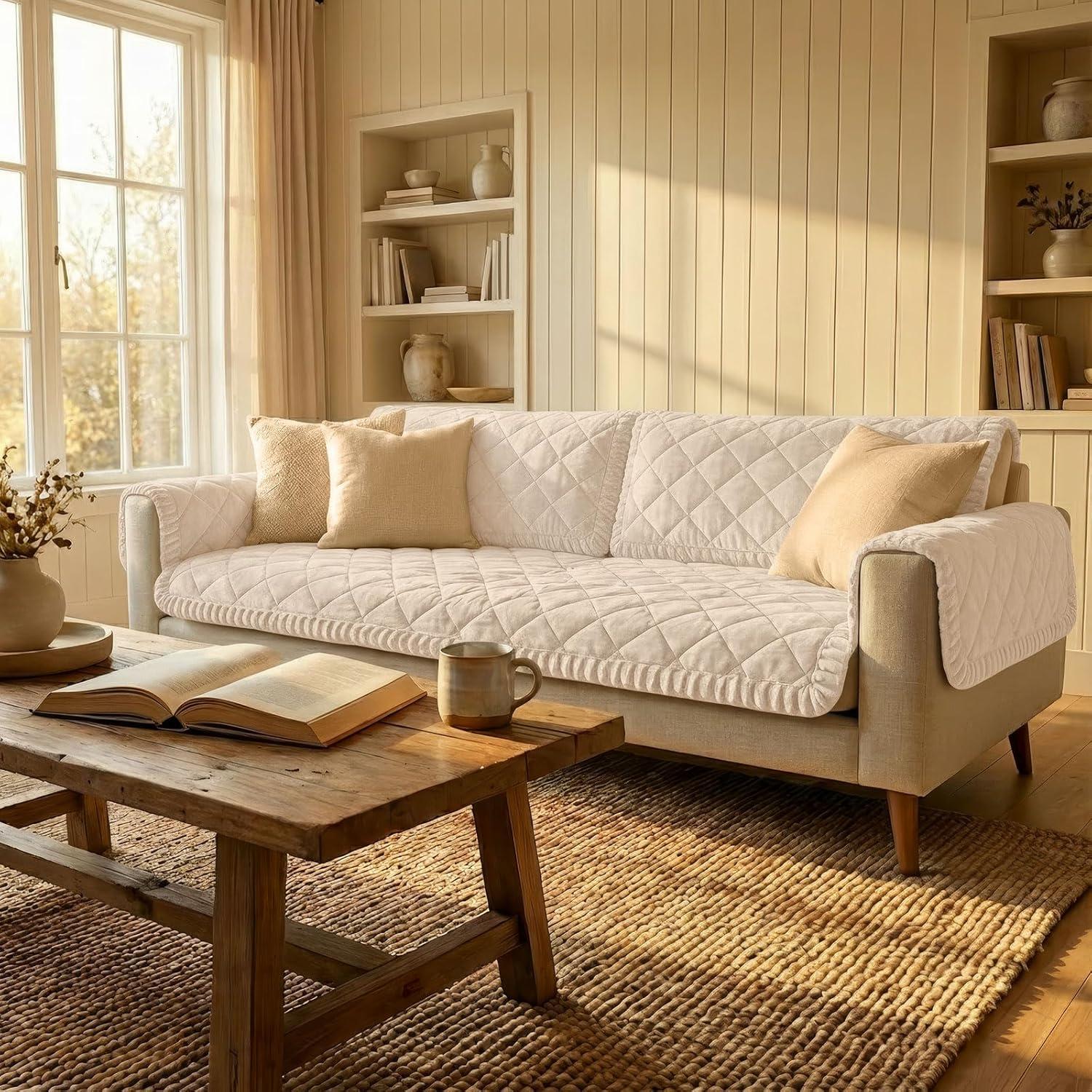 Soft Fuzzy Fabric: Our couch cover for sofa which made with ultra-soft fuzzy material that provides a comfortable surface for pets and family members, featuring an elegant quilted diamond pattern with decorative ruffled edges for enhanced style