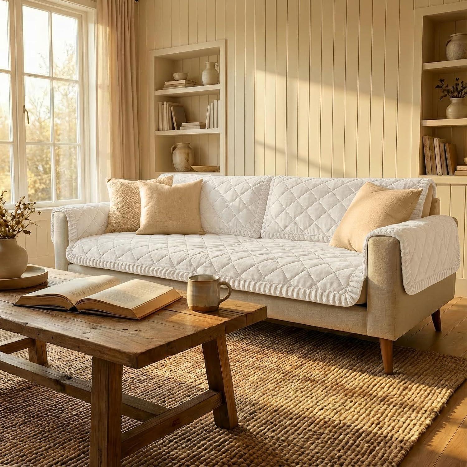 Soft Fuzzy Fabric: Our couch cover for sofa which made with ultra-soft fuzzy material that provides a comfortable surface for pets and family members, featuring an elegant quilted diamond pattern with decorative ruffled edges for enhanced style