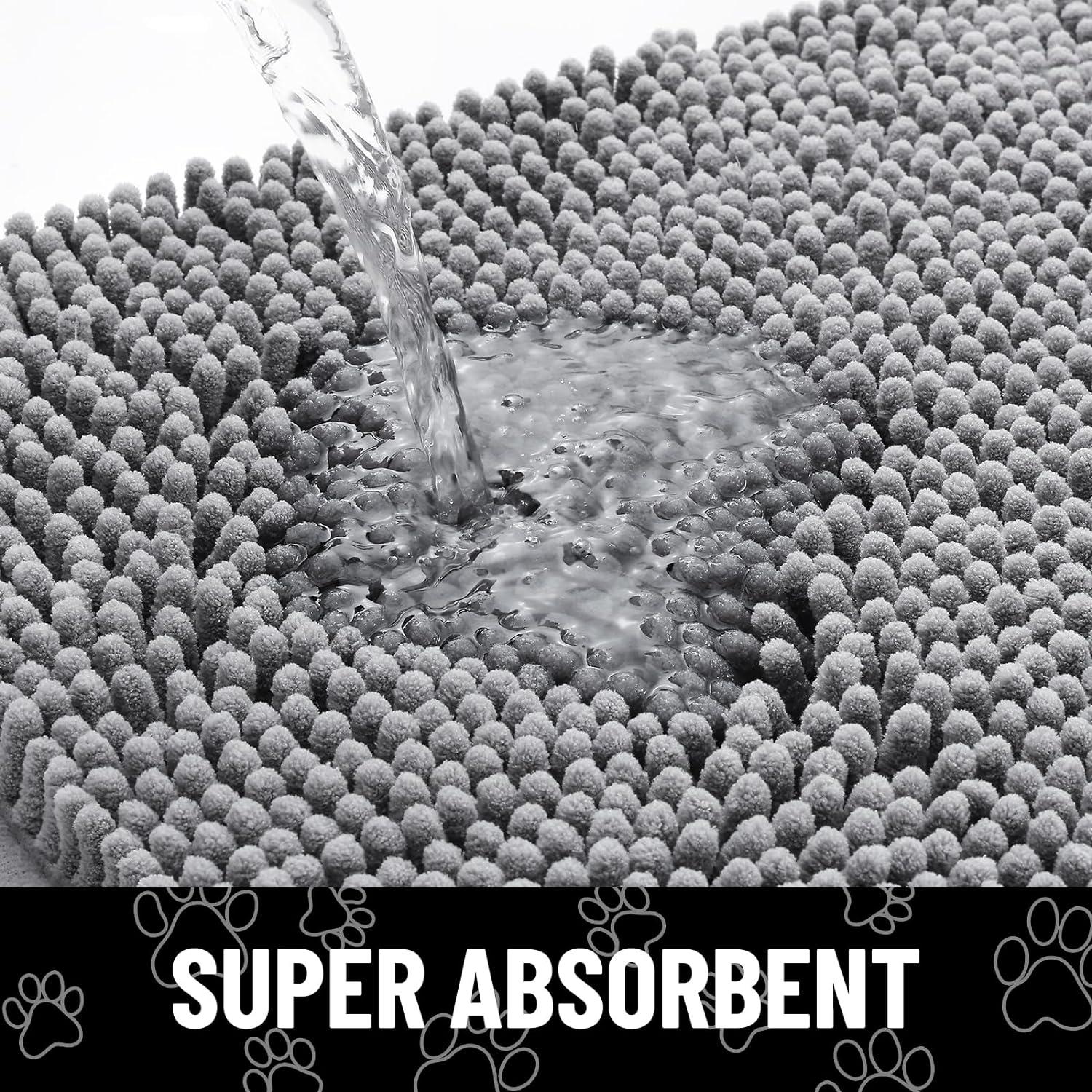 Smiry Half Circle Dog Door Mat for Muddy Paws, Absorbent Dirt Trapper Non Slip Quick Dry Washable Chenille Mat for Mud Dogs, Entry Rug for Indoor and Outdoor (30×20 Inches, Grey)