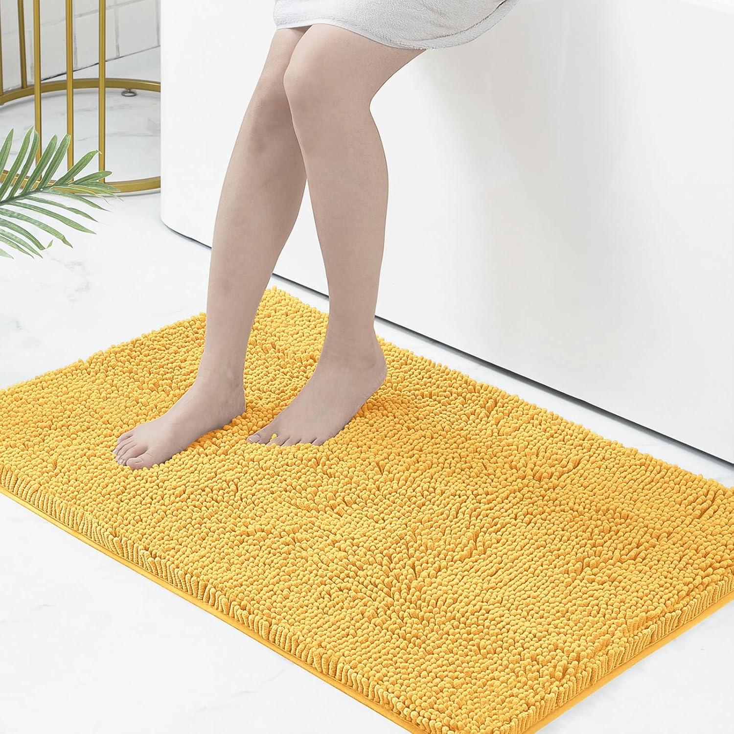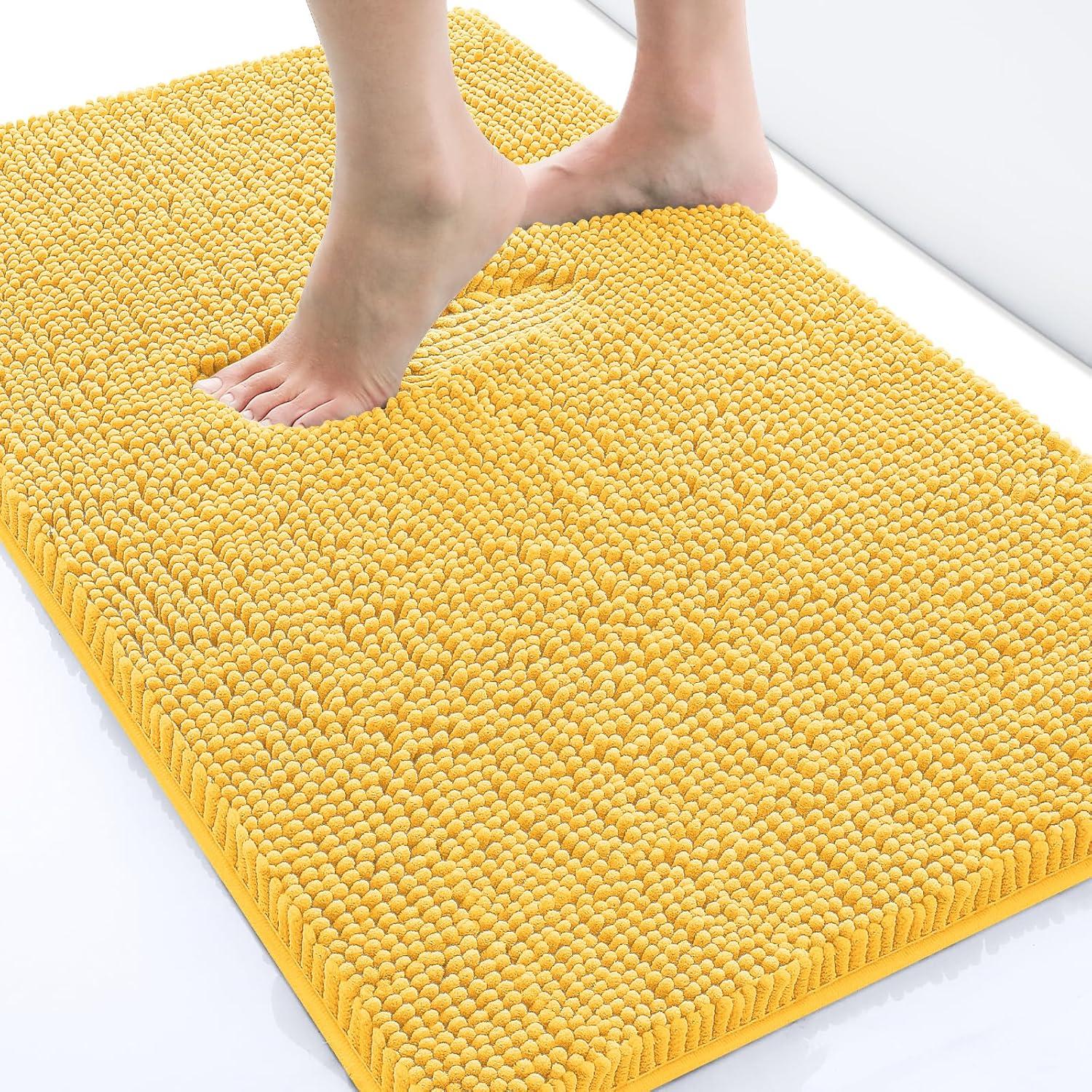 Smiry Luxury Chenille Bath Rug Set, 2 Piece Extra Soft and Absorbent Shaggy Bathroom Mat Rugs, Machine Washable, Non-Slip Plush Carpet Runner for Tub, Shower, and Bath Room(24''x16''+36"x24",Yellow)