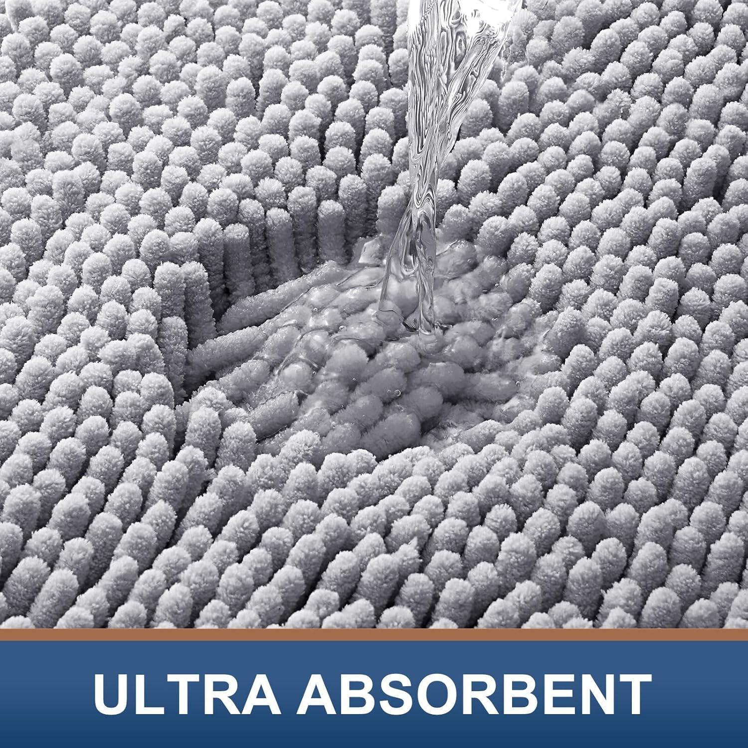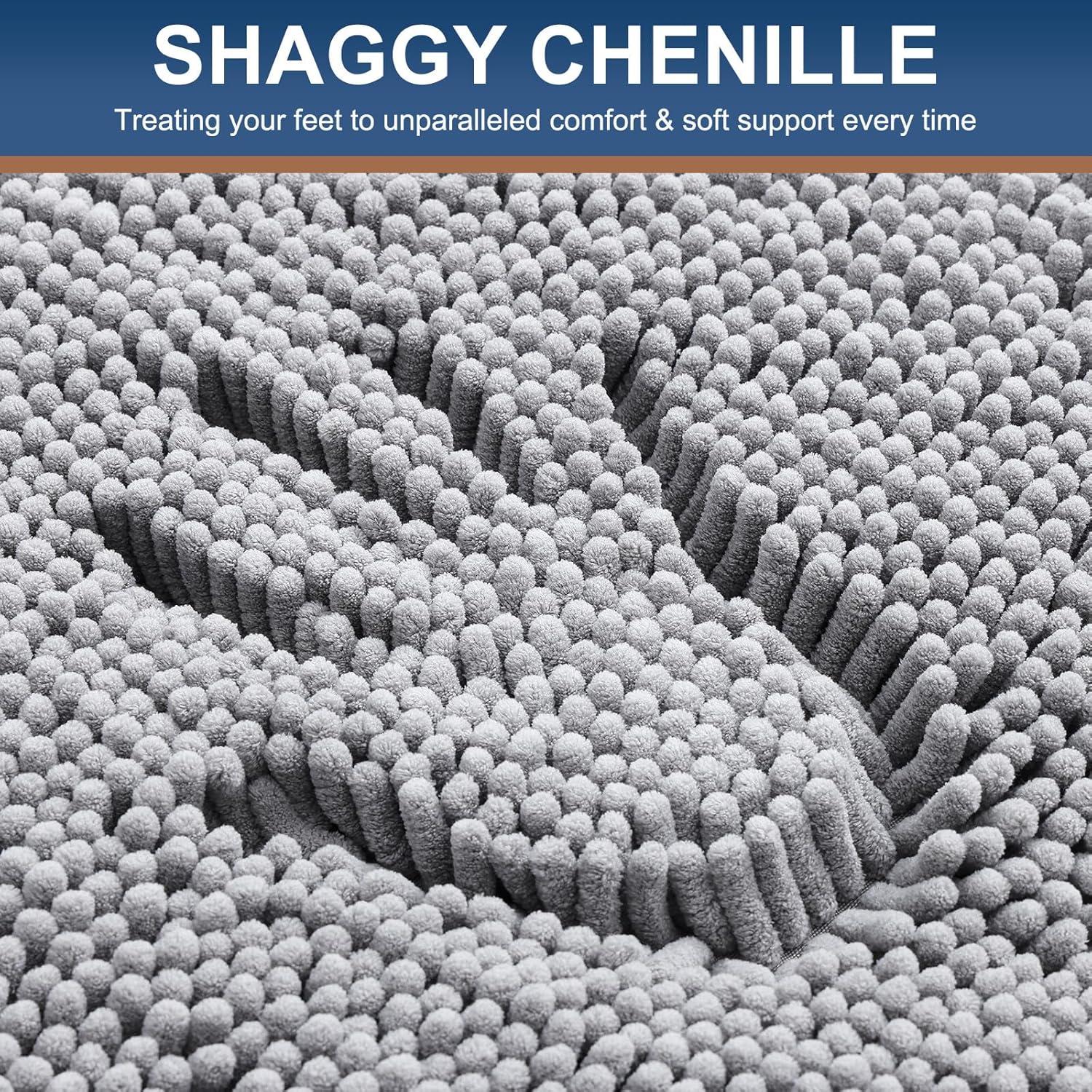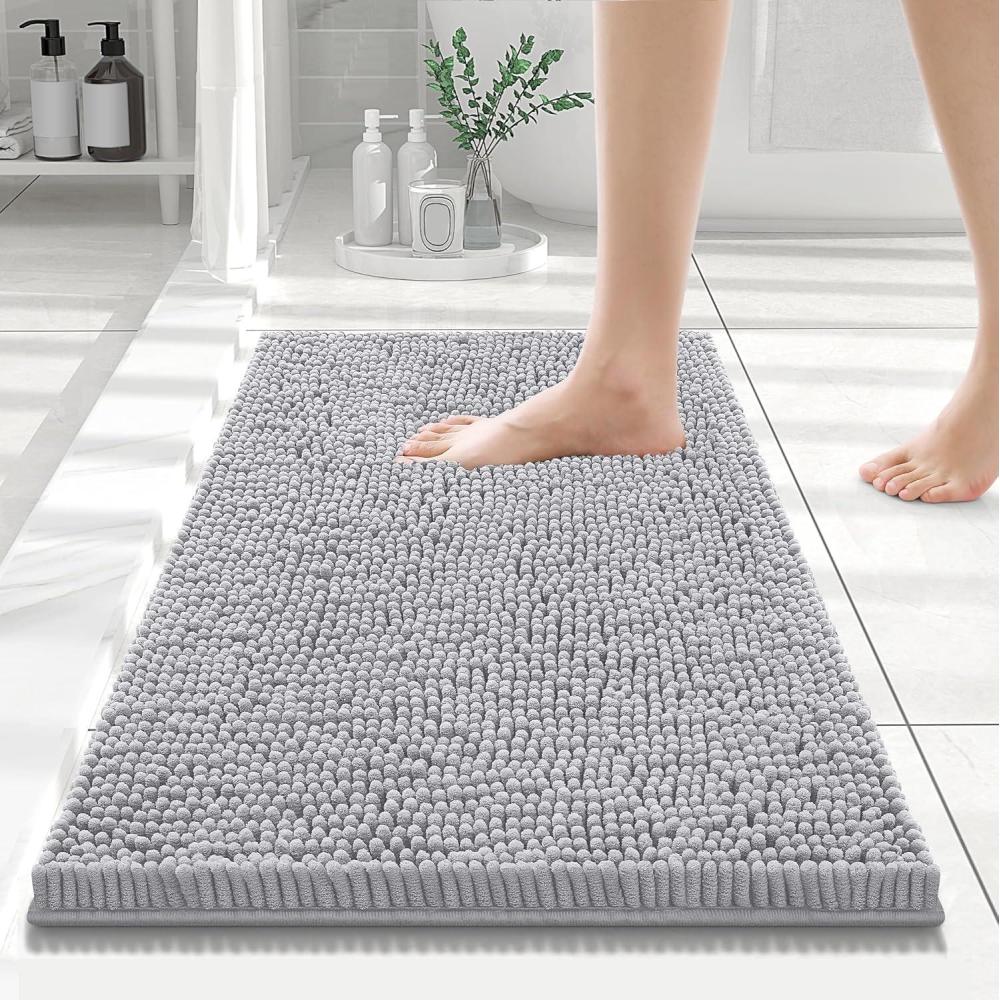 Smiry Luxury Chenille Bathroom Rugs 24x16, Extra Soft and Absorbent Shaggy Bath Mat, Machine Washable, Non-Slip Plush Carpet Runner for Tub, Shower, and Floor, Home Decor Accessories, Light Grey