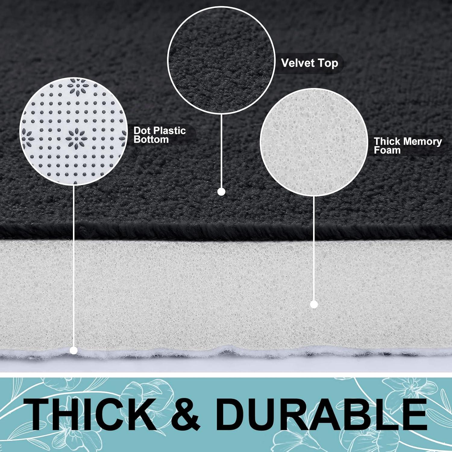 imageSmiry Memory Foam Bath Mat Set 30x20 and 36quotx24quot Black Super Soft Absorbent Bathroom Rugs Non Slip Bath Rug Runner for Shower Bathroom Floors