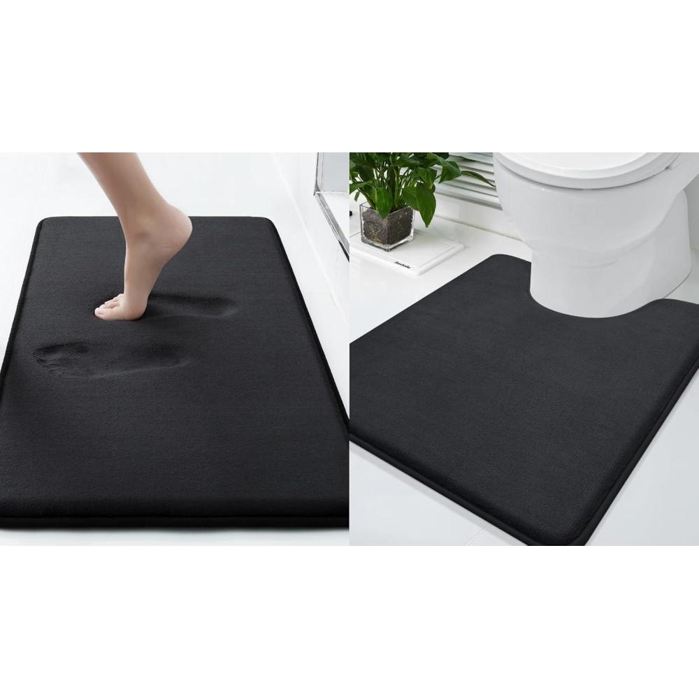 Smiry Memory Foam Bath Mat 30x20 and 24x20 U-Shaped Toilet Extra Soft Absorbent Bathroom Rugs Non Slip Bath Rug Runner for Shower Bathroom Floors, Black