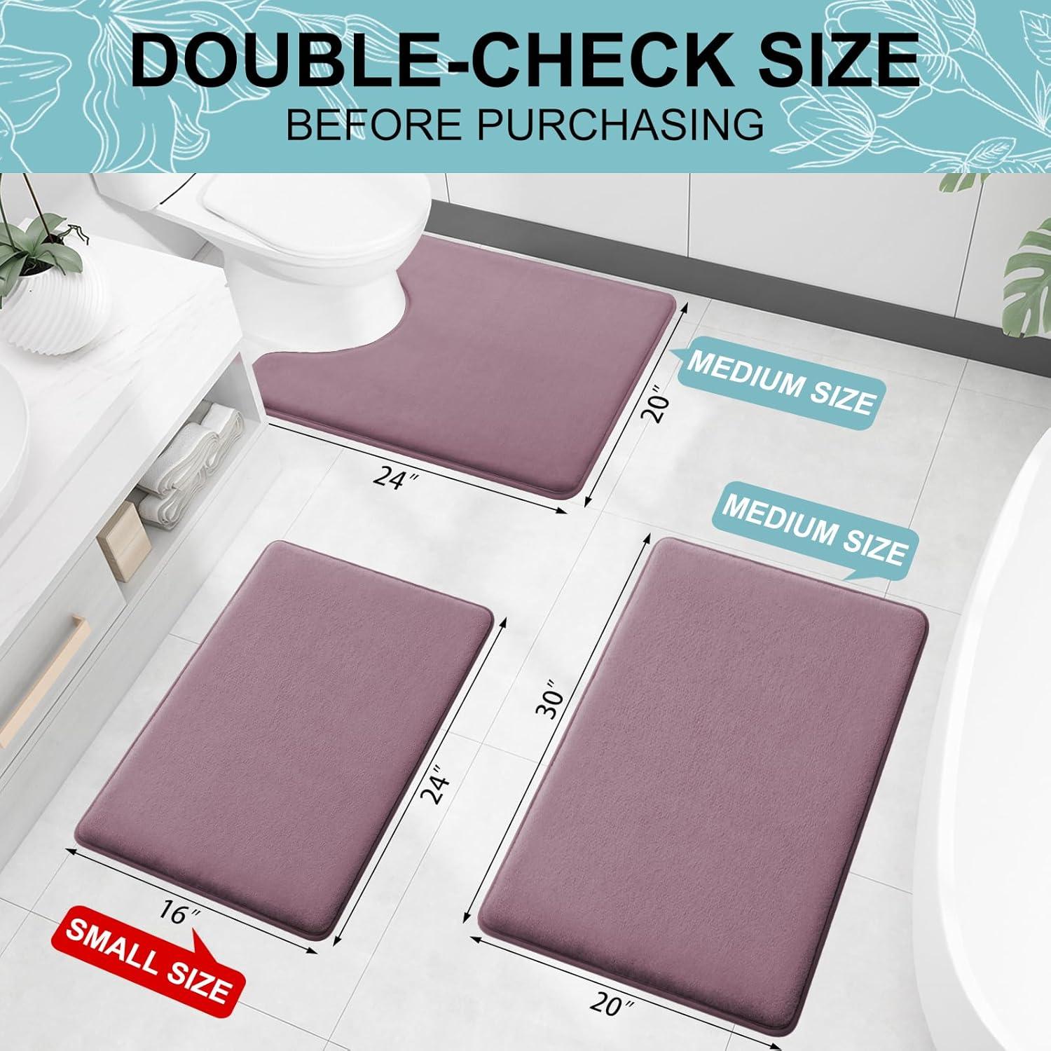 Smiry Memory Foam Bath Mat 30x20, Extra Soft and Absorbent Bathroom Mats, Non Slip Washable Carpet for Floor, Shower and Tub, Deep Plum