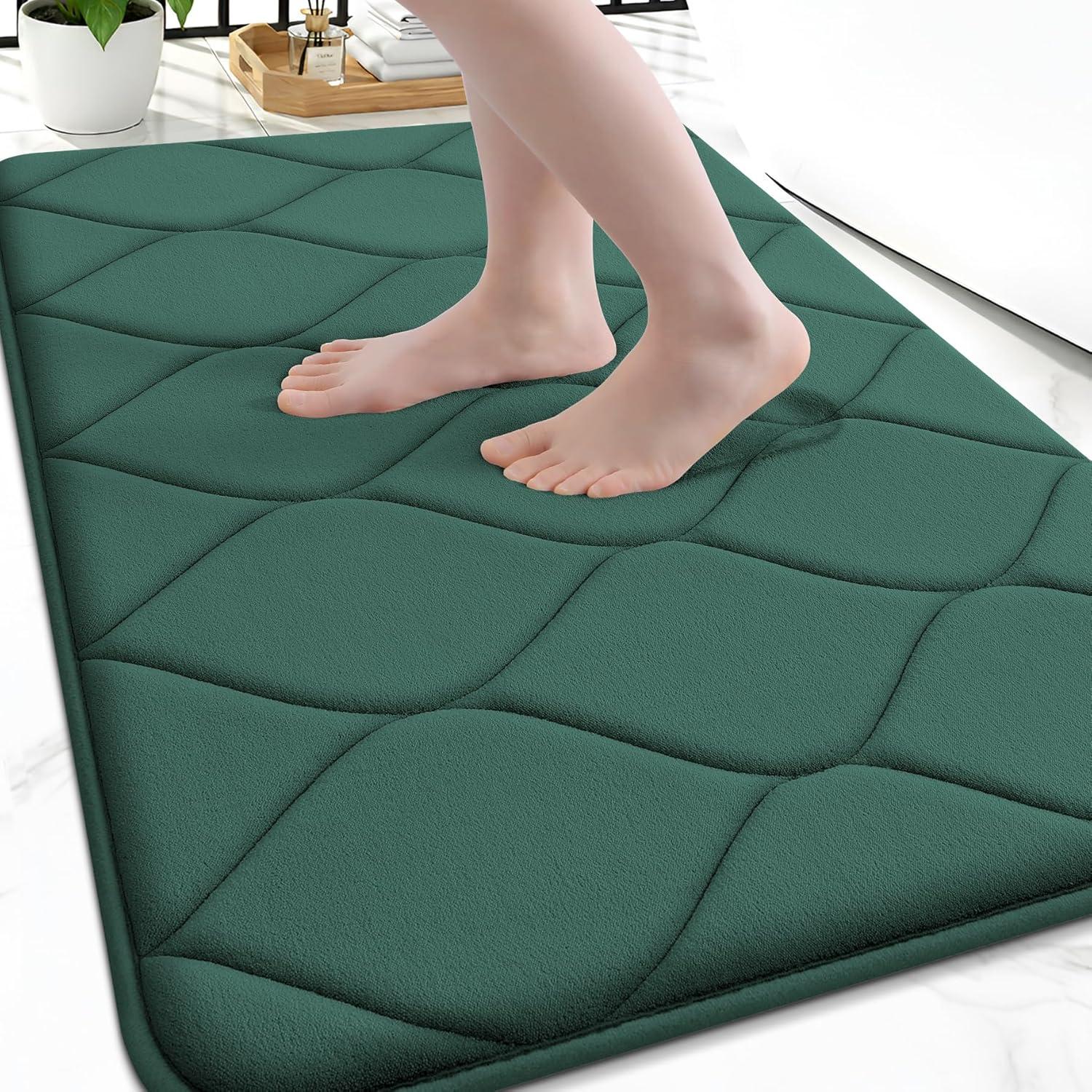 Smiry Memory Foam Bath Mat 30''x20'', Ultra Soft Non-Slip Bathroom Rug, Plush Water Absorbent Quick Dry and Machine Washable Floor Mat for Shower, Tub & Home Decor, Grey(Hunter Green)