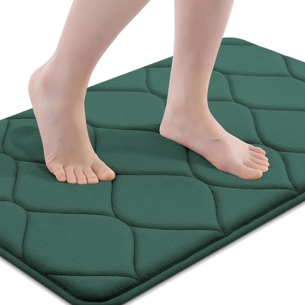 imageSmiry Memory Foam Bath Mat 30x20 Ultra Soft NonSlip Bathroom Rug Plush Water Absorbent Quick Dry and Machine Washable Floor Mat for Shower Tub amp Home Decor GreyHunter Green