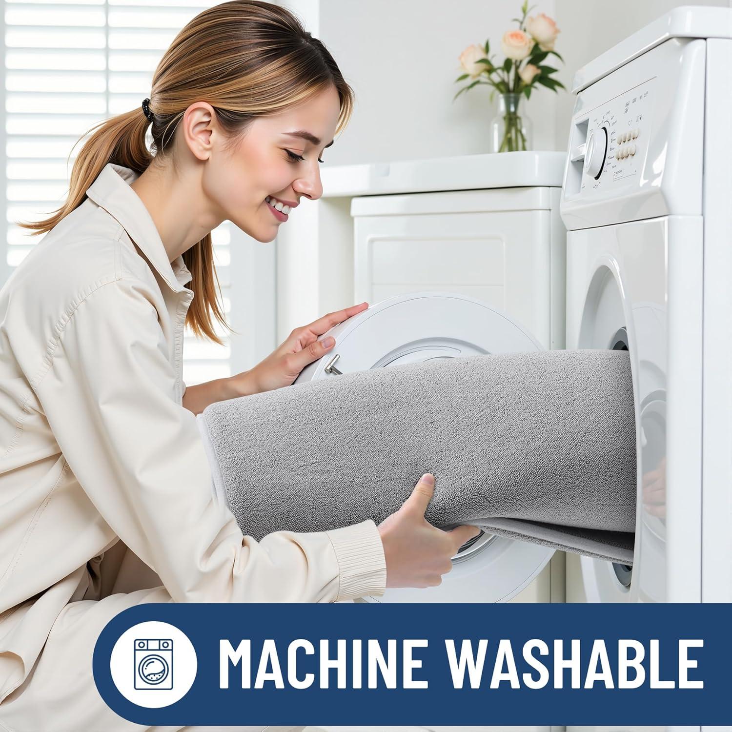 Smiry bathroom rugs pamper your feet with soft, comfortable; The thick fleece helps to soothe your feet and keep your toes warm away from the cold floor below. Features: [SOFT & COMFORTABLE] : Smiry bath mats are filled with high-density polyurethane memory foam that soothes tired feet and shields toes from the cold floor. The material, ultra-soft and cozy, relieve pressure and fatigue on your feet. Let you enjoy the comfort of standing on the clouds! [Excellent Absorbent] Crafted with thousands of ultra-absorbent microfiber shags, Smiry Bathroom mats swiftly soak up moisture, avoiding wet floors and ensuring a clean, dry environment. With deep pile design, these mats dry rapidly, ready for your next use. [Non-Slip Backing] Our bath rugs feature a non-slip backing made from good quality mesh PVC, providing a secure grip that avoid shifting and skidding. Important: Place on CLEAN DRY FLAT FLOOR ONLY to avoid slipping. Keep the rug's bottom dry at all times. [Easy to Clean & Care] Smiry bathroom rugs are effortlessly maintainable. Toss them in your washing machine and tumble dry on low for a hassle-free cleaning experience. The extra-soft microfiber material remains smooth, even after multiple washes. [Various Colors & Versatile Usage] Elevate your space with a touch of style. Choose from a variety of colors to seamlessly integrate Smiry rugs into your bathroom, shower, living room, bedroom, or any desired area. Experience warmth, support, and aesthetic appeal that enriches your surroundings. Choice for sizes: 47 x 24 inch/ 47 x 17 inch/ 24 x 16 inch/47 x 20 inch/ 59 x 20 inch/ 40 x 32 inch/48 x 32 inch/59 x 35 inch/30 x 20 inch/ 70 x 24 inch/ 36 x 24 inch/ 59 x 24 inch/ 44 x 24 inch. Choice for colors: Beige/ Black/ Brown/ Charcoal Grey/Dark Grey/ Grey/ Navy Blue/ Turquoise/ Burgundy/ White/ Yellow/Green/Pink/Sky Blue/Purple/.