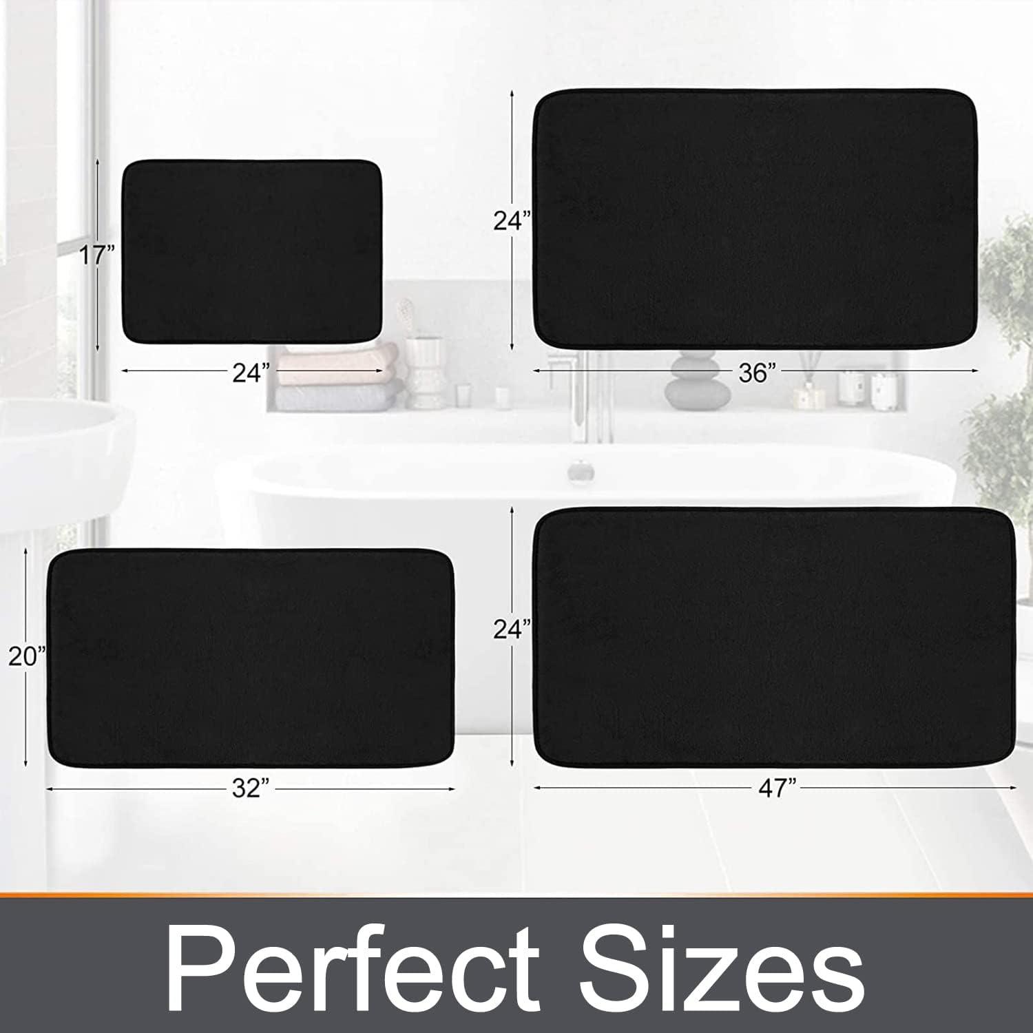 Smiry Memory Foam Bath Mat Set 30''x20'' and 36"x24" Black, Super Soft Absorbent Bathroom Rugs Non Slip Bath Rug Runner for Shower Bathroom Floors
