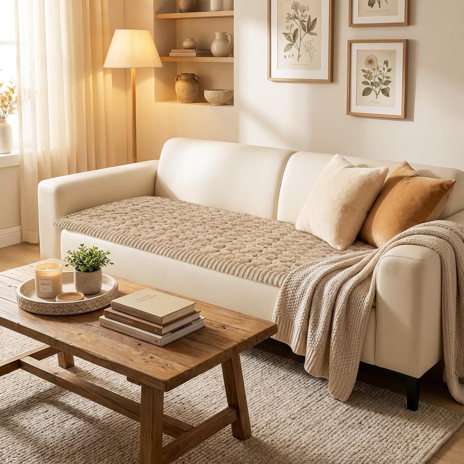 [Easy to Clean] This sofa cover is machine washable and designed to withstand repeated cleaning without fading, shrinking, or losing softness. Simply toss it in on a gentle cycle. Installation is a breeze—simply unfold and drape it over your sofa for a seamless fit in seconds