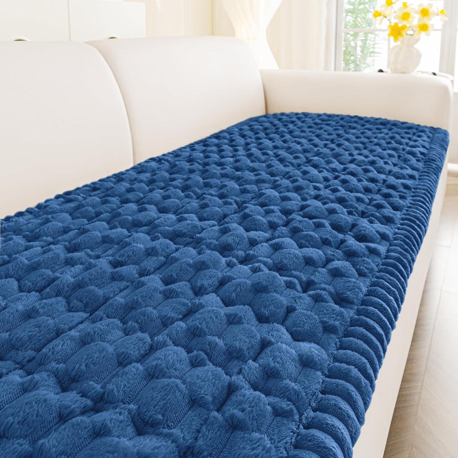 Smiry Pet Couch Cover for 3 Cushion Sofa, Non-Slip Fuzzy Couch Cover for Dogs Washable, Thick Soft Sofa Slipcovers Cushion Protector Pet Friendly (Grey, 27.6″ x 59″)(Navy)