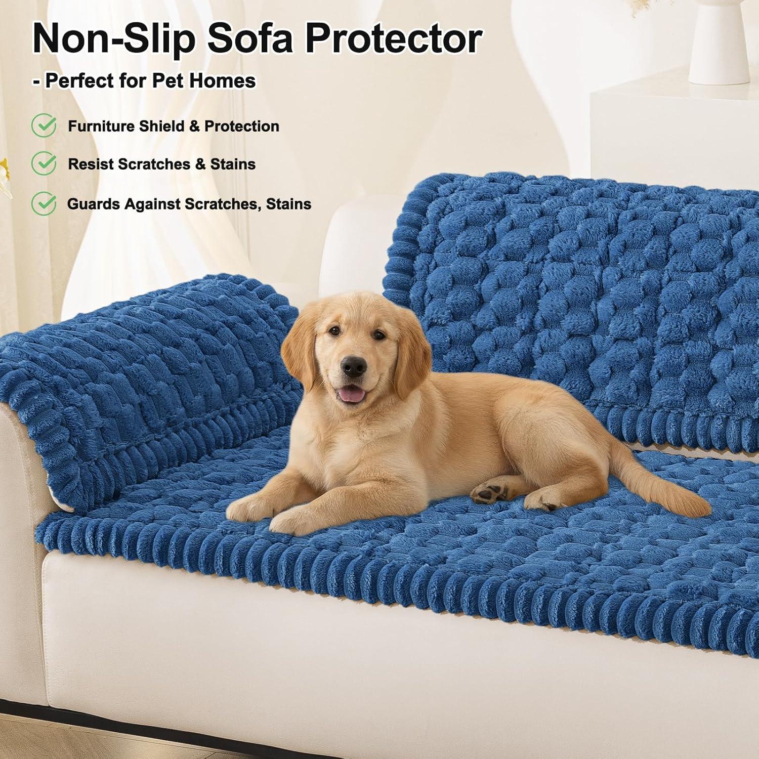 imageSmiry Pet Couch Cover for 3 Cushion Sofa NonSlip Fuzzy Couch Cover for Dogs Washable Thick Soft Sofa Slipcovers Cushion Protector Pet Friendly Grey 276quot x 59quotNavy