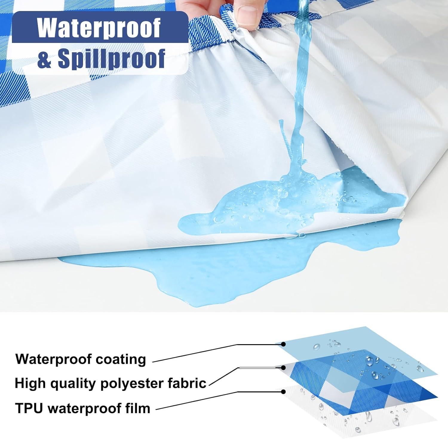 [Waterproof & Spillproof] Our tablecloths feature a double-sided waterproof design, with a spill-proof surface and an additional inner TPU layer that causes spills to bead up instead of soaking in.