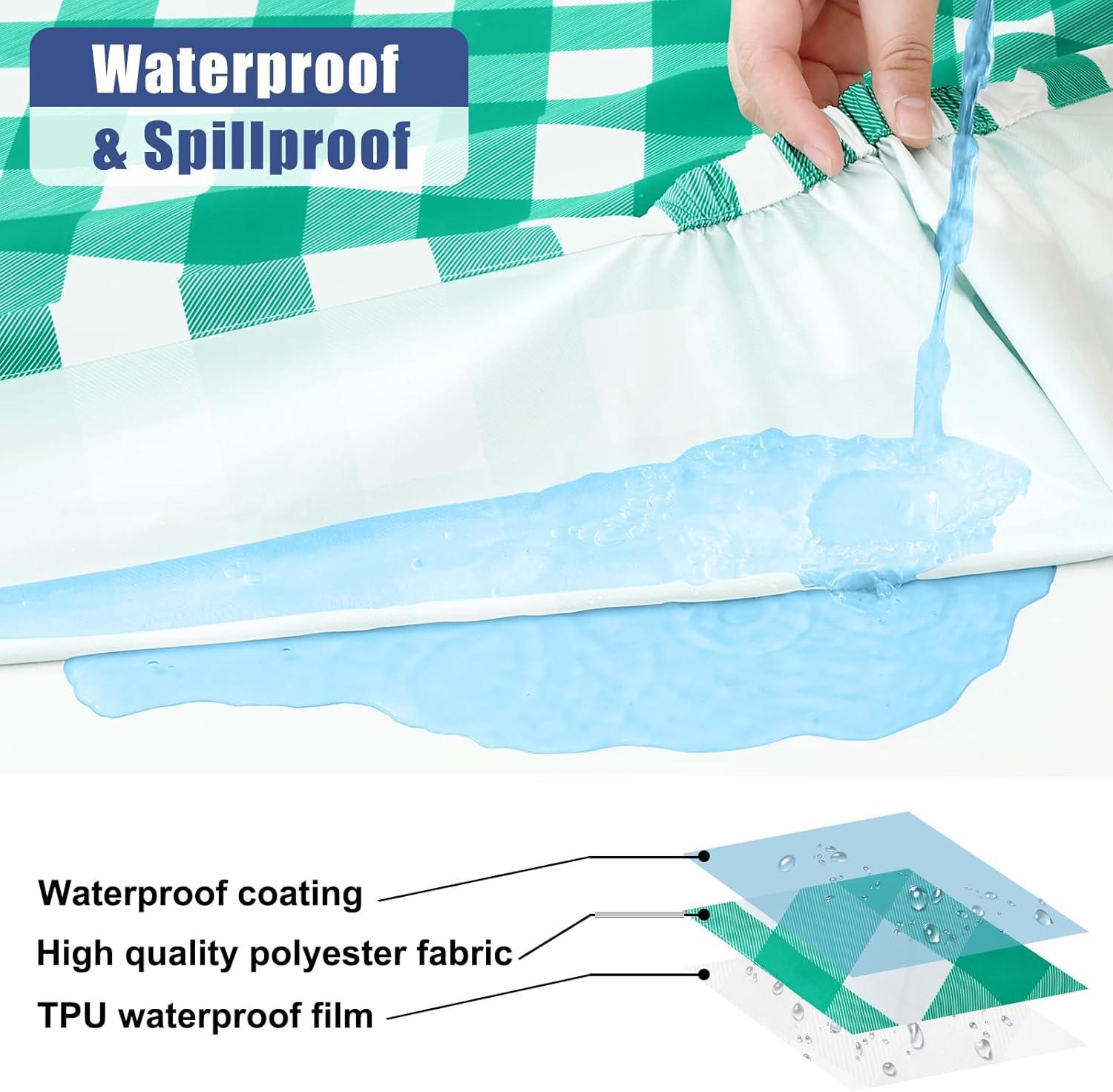 [Waterproof & Spillproof] Our tablecloths feature a double-sided waterproof design, with a spill-proof surface and an additional inner TPU layer that causes spills to bead up instead of soaking in.