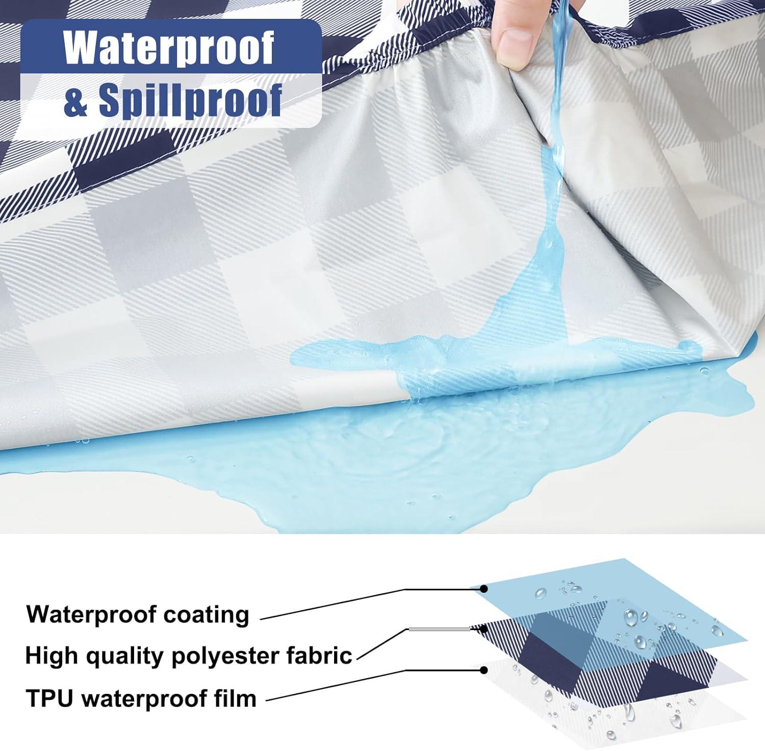 [Waterproof & Spillproof] Our tablecloths feature a double-sided waterproof design, with a spill-proof surface and an additional inner TPU layer that causes spills to bead up instead of soaking in.