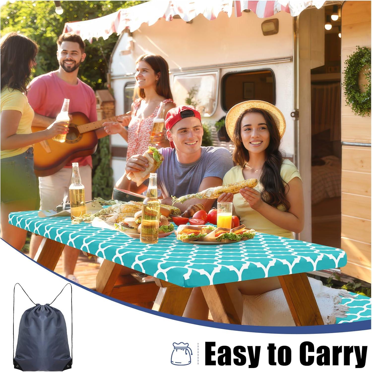 imageSmiry Picnic Table Cover with Bench Covers Waterproof Elastic Fitted Tablecloth for 6 Foot Tables Washable Polyester Tablecloths for Camping Indoor ampamp Outdoor Teal 30x72 Inch 3pc SetWhite