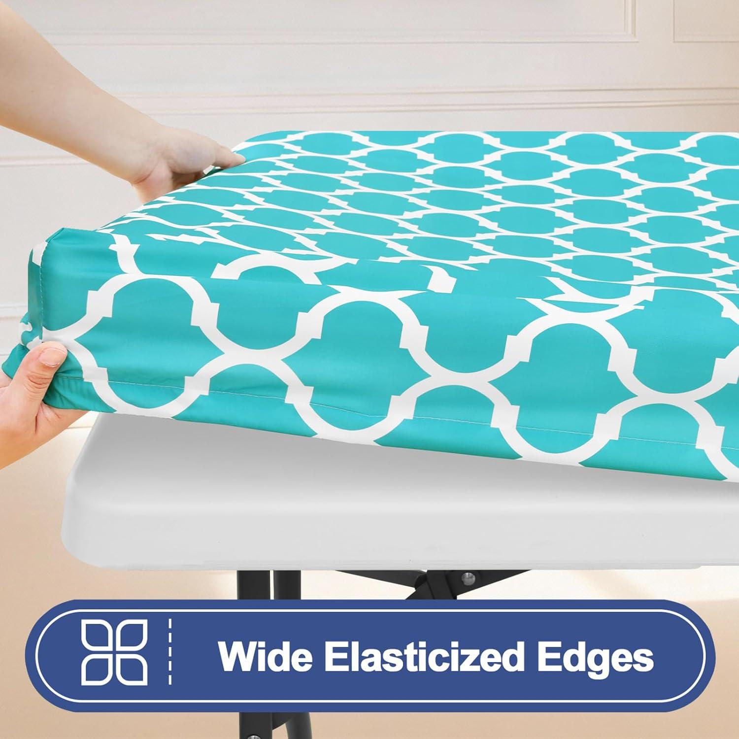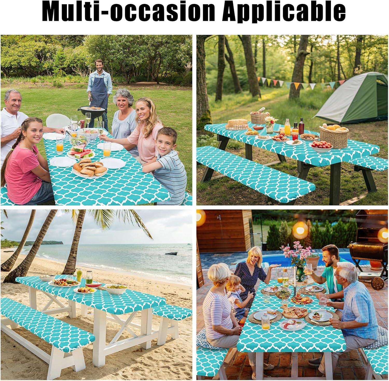 Smiry Picnic Table Cover with Bench Covers, Waterproof Elastic Fitted Tablecloth for 6 Foot Tables, Washable Polyester Tablecloths for Camping, Indoor & Outdoor (Teal, 30x72 Inch 3-pc Set)(Teal)