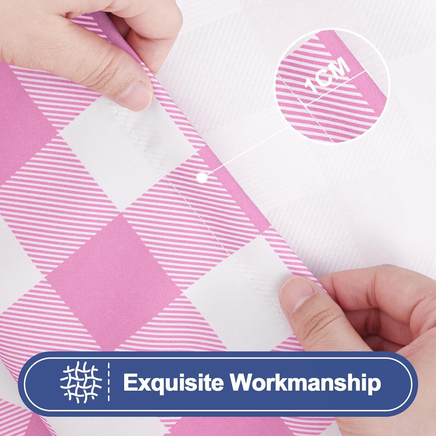 Smiry Picnic Table Cover with Bench Covers, Waterproof Elastic Fitted Tablecloths for 6 Foot Rectangle Tables, Washable Buffalo Plaid Tablecloth for Camping, Outdoor (Black & White, 30″x72″)(Pink and White)