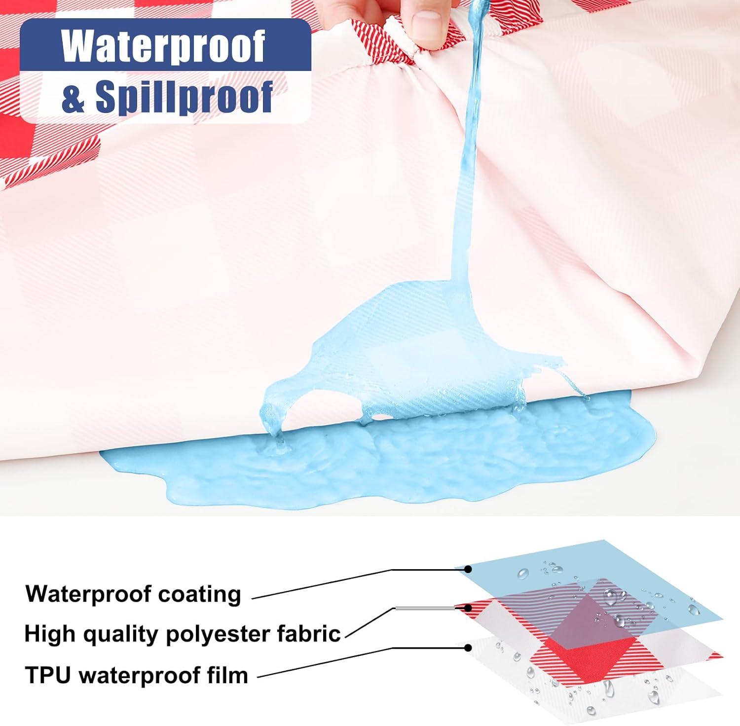 [Waterproof & Washable] Our tablecloths feature a double-sided waterproof design, with a spill-proof surface and an additional inner TPU layer that causes spills to bead up instead of soaking in. Cleaning is hassle-free, machine washable in cold water, and looks like new.