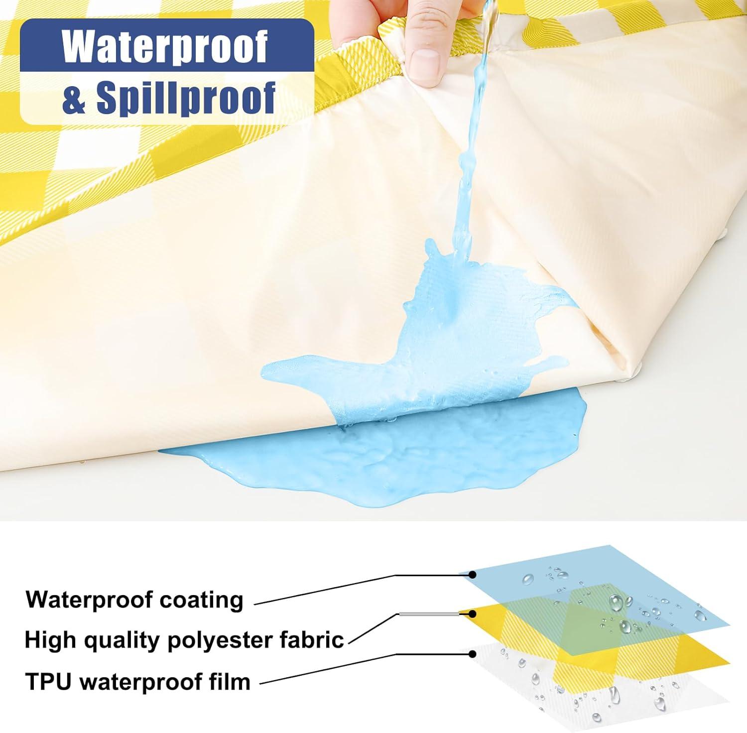 [Waterproof & Washable] Our tablecloths feature a double-sided waterproof design, with a spill-proof surface and an additional inner TPU layer that causes spills to bead up instead of soaking in. Cleaning is hassle-free, machine washable in cold water, and looks like new.